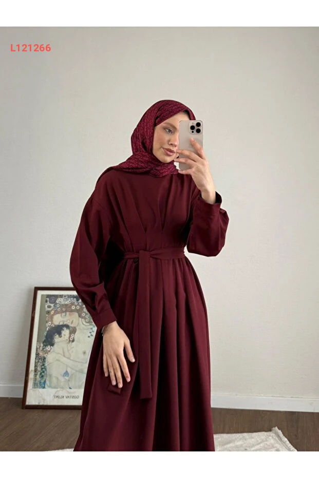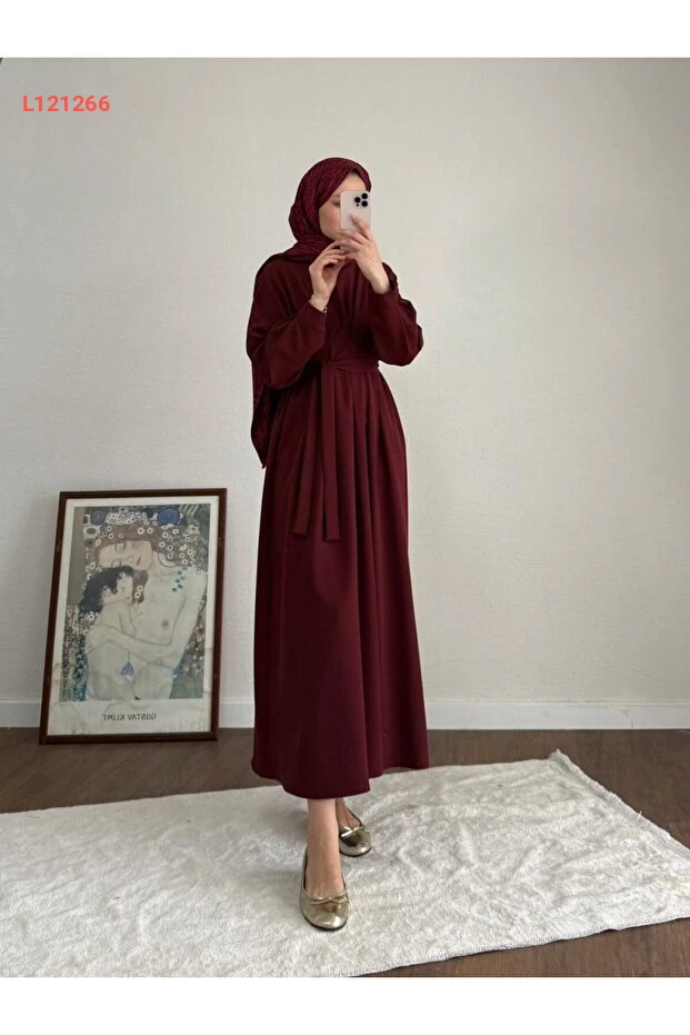 فستان مزدوج من قماش بوردو بخصر مخفي من RFK Butik للنساء