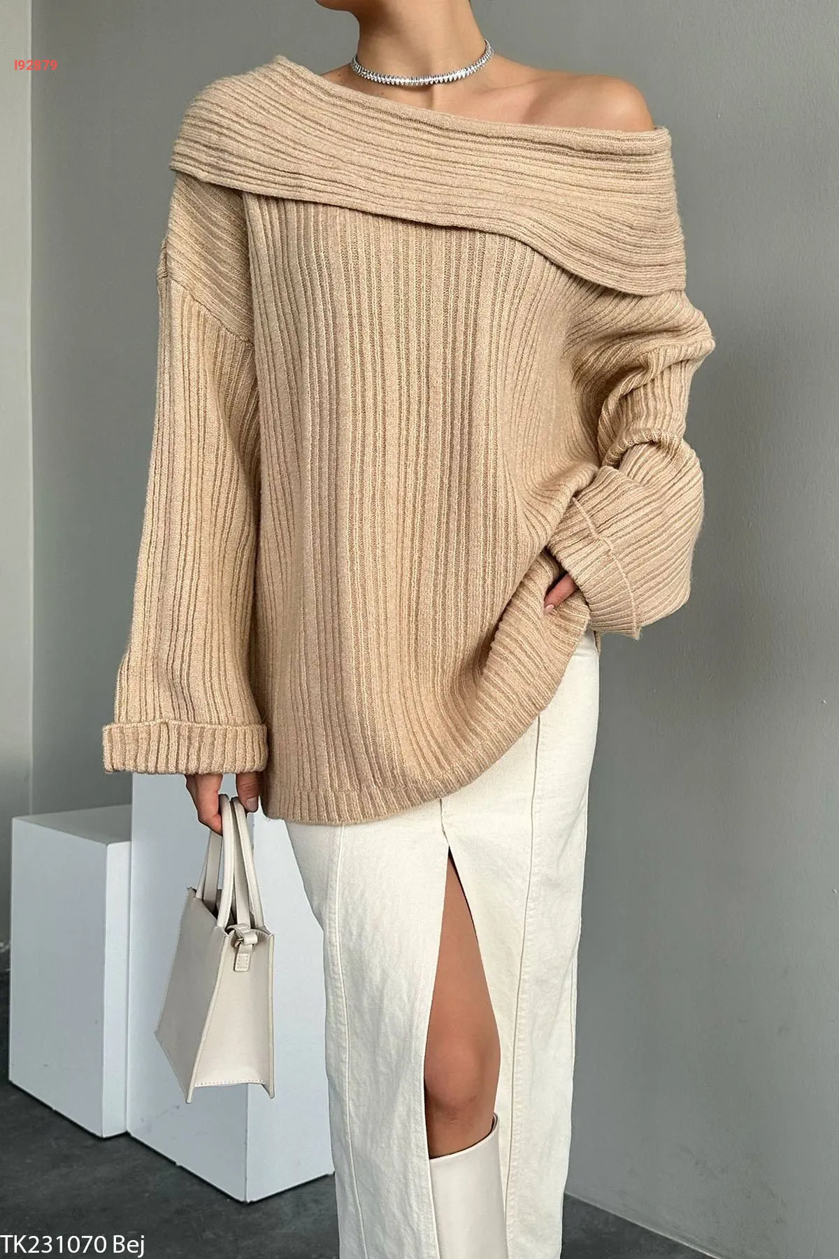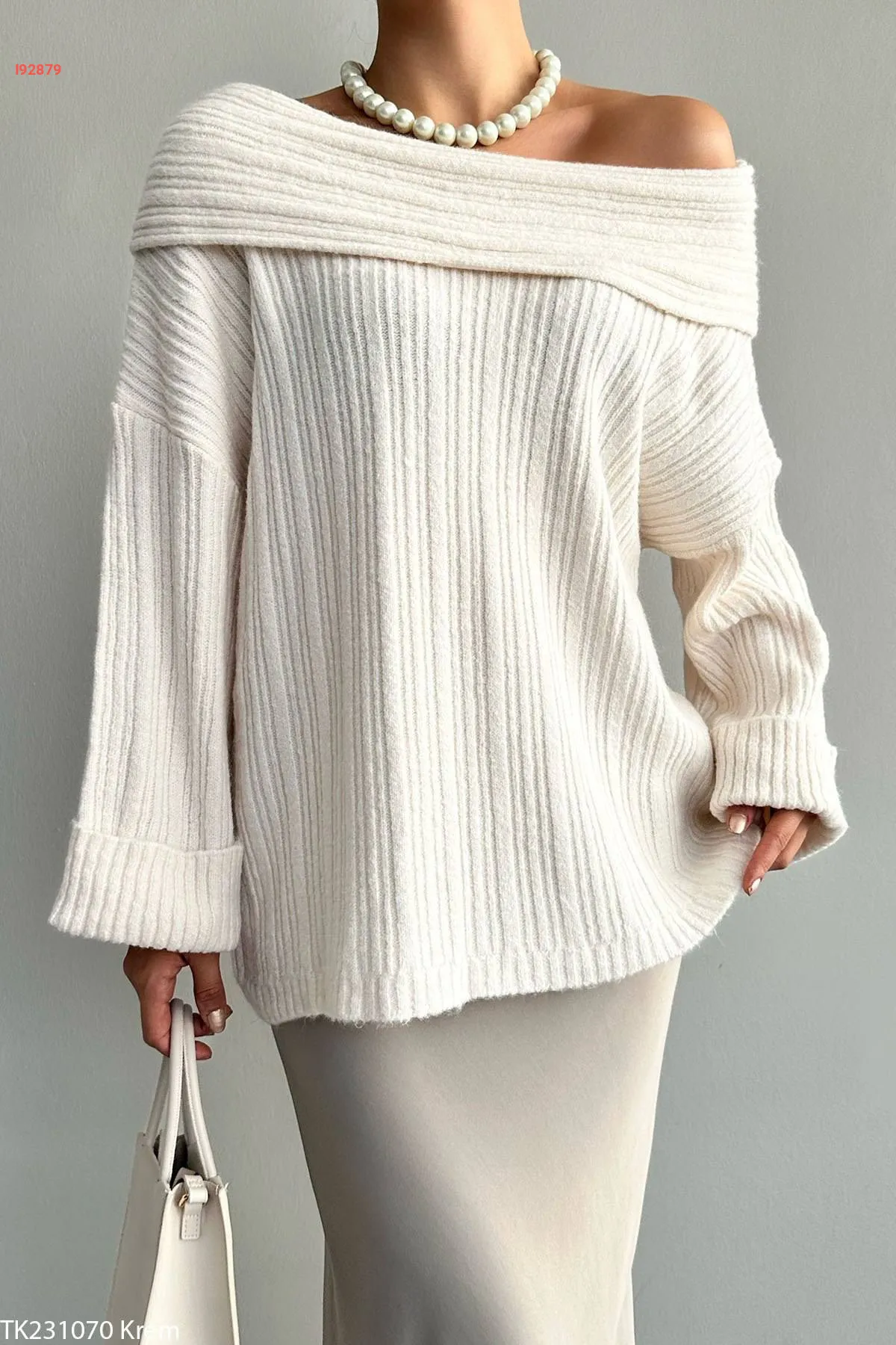 كنزة تريكو بياقة مادونا