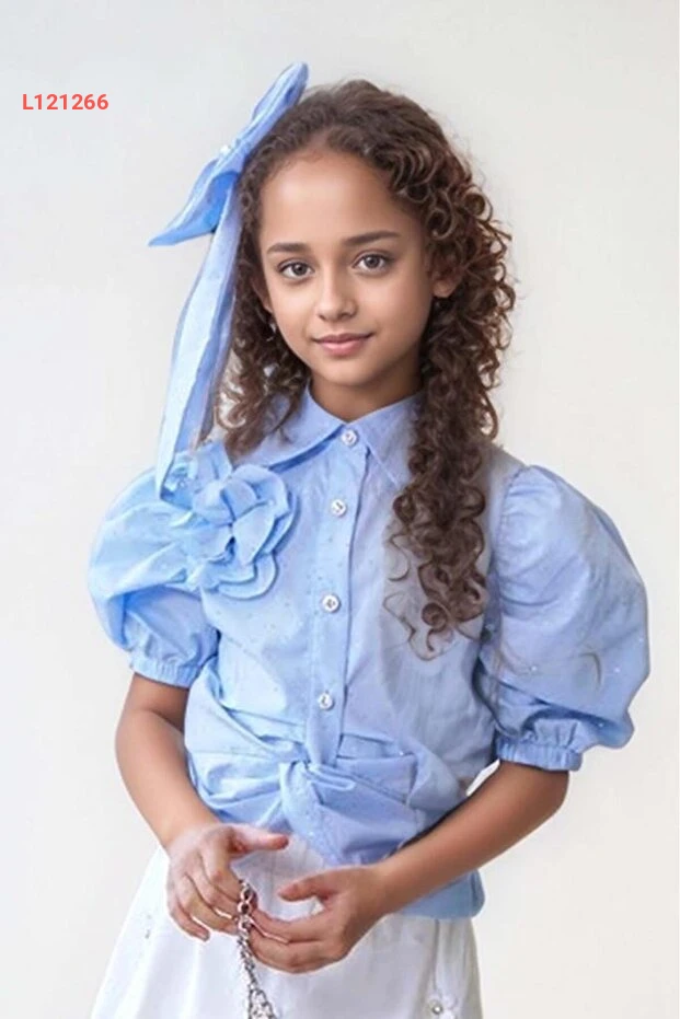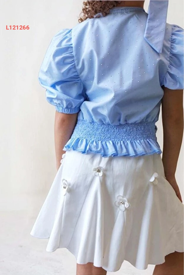 اجعلي صغيرتك تتألق بأناقة مع طقم "Riccotarz" المكون من قميص أزرق ذو أكمام على شكل بالون وتفاصيل لامعة تتلألأ بجمال. يأتي مع تنورة مفعمة بالزهور، مما يمنحها لمسة أنثوية رائعة تناسب كل المناسبات. تصميم غير متساوي يضيف لمسة عصرية، ليجمع بين الراحة والأناقة في آن واحد.