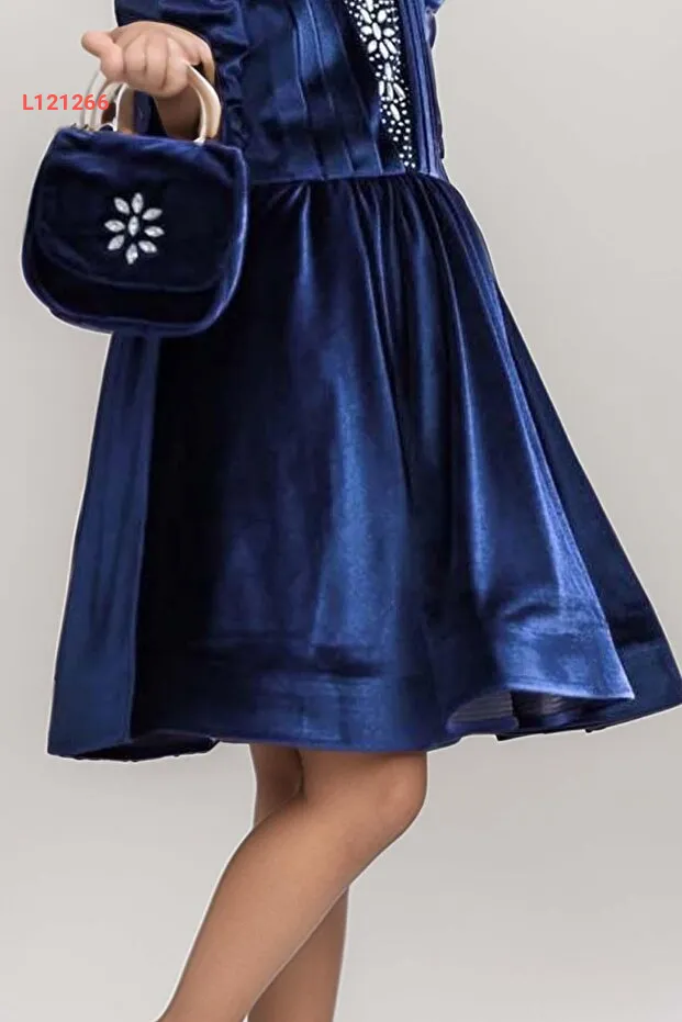 أضفي لمسة من الأناقة والرقي على إطلالة ابنتك مع فستان Riccotarz الجذاب! يتميز هذا الفستان الأنيق بياقة عالية وتصميم فاخر من المخمل الأزرق الداكن، مزين بتفاصيل زهور راقية من الأحجار اللامعة، مما يجعله الخيار المثالي للمناسبات الخاصة. مع قصته المريحة وجودته العالية، ستحظى ابنتك بشعور من الفخامة والثقة في كل لحظة تلبسه.