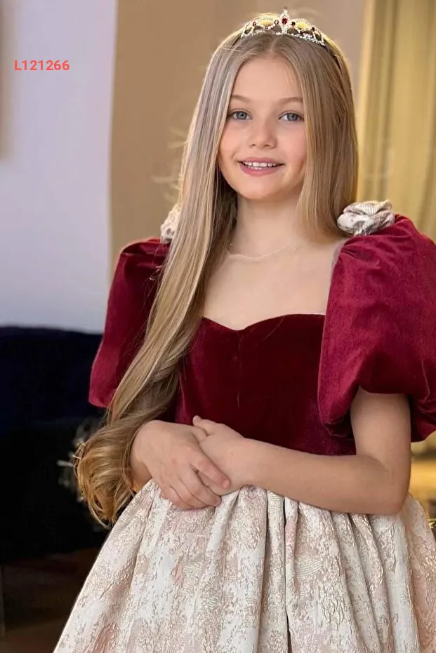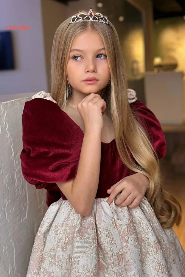 تألقي بإطلالة ساحرة مع فستان Riccotarz بروعة اللون bordo! يتميز بتصميم رائع يضيف لمسة أنيقة مع أكمام بالون مزينة بتفاصيل زهرية رائعة، بالإضافة إلى قماشه المخملي الفاخر الذي يوفر راحة لا مثيل لها. هذا الفستان هو الخيار المثالي لجعل ابنتك نجمة أي مناسبة خاصة!