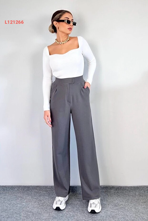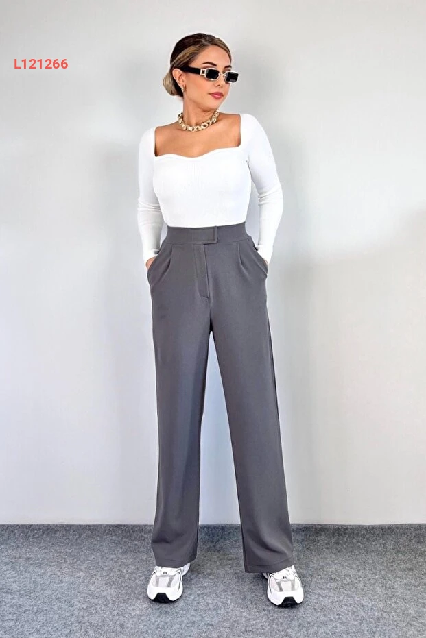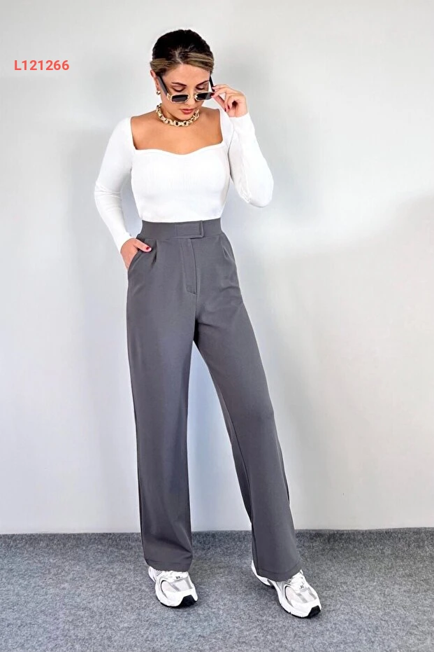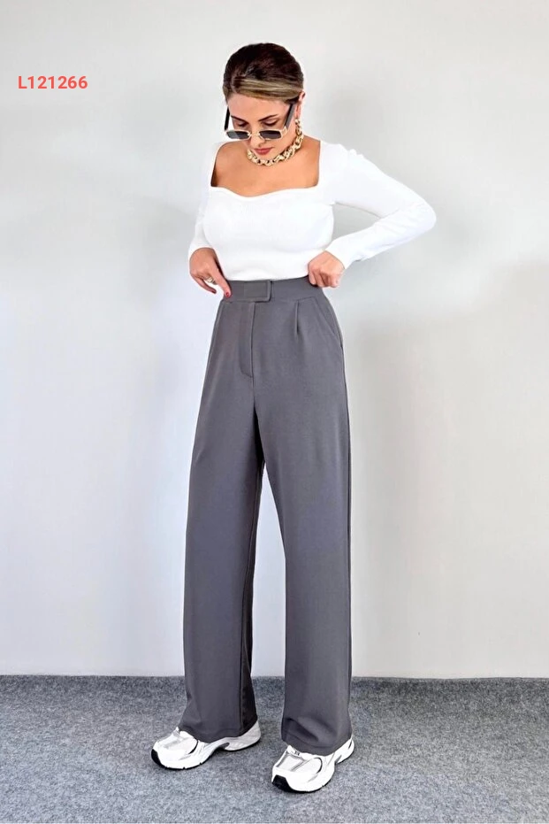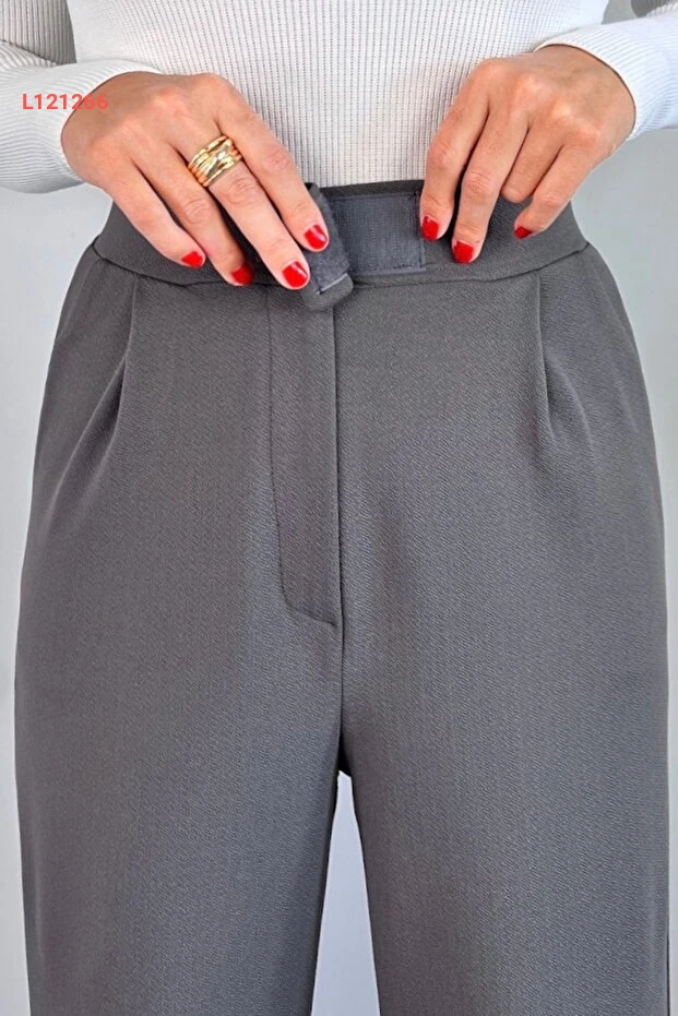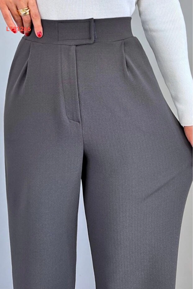 بنطلون بالازو نسائي بألياف مرنة مع إغلاق لاصق بلون رمادي داكن