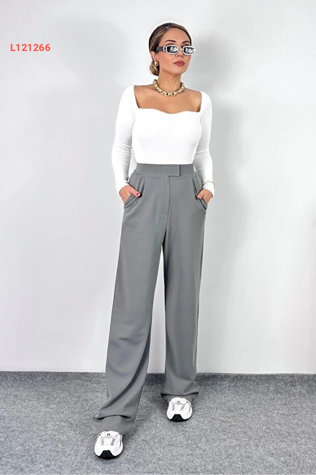 بنطال بالازو رمادي قلاب مرن للنساء من ريتني سي لاين