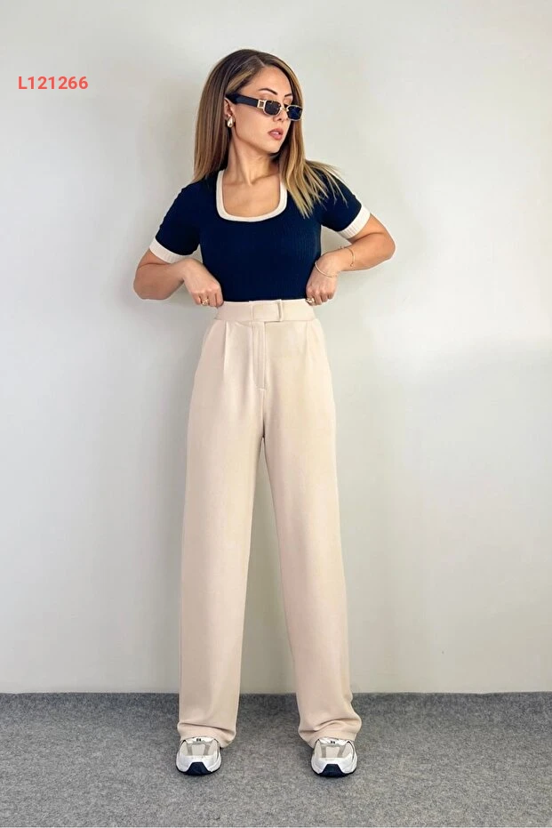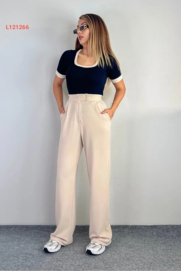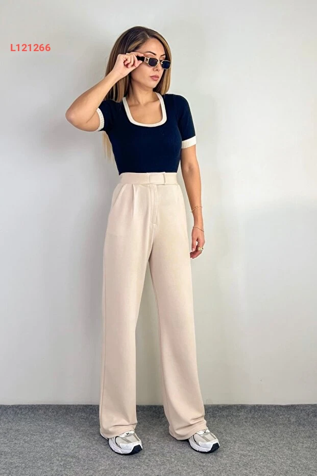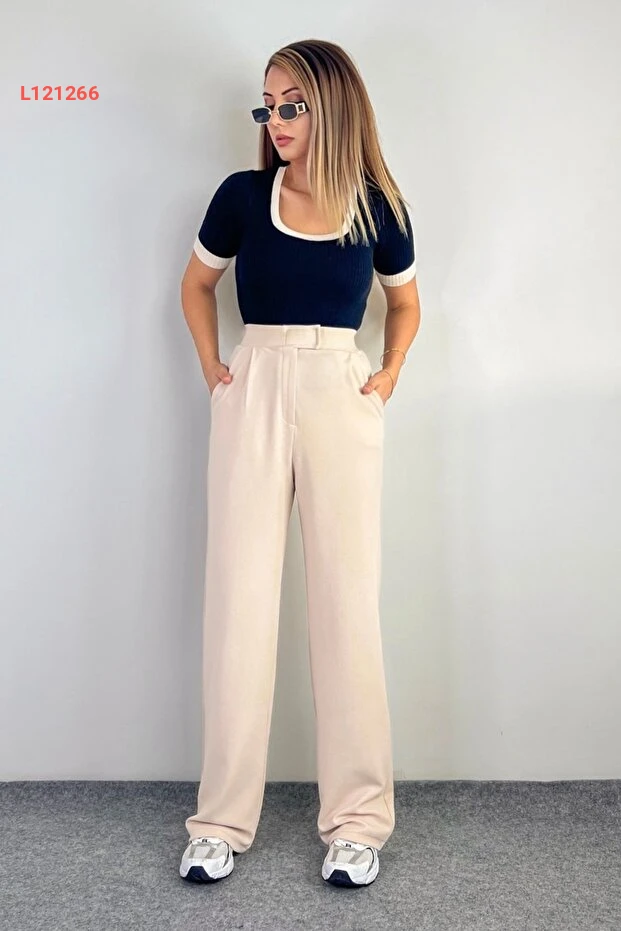 استمتعي بأناقتك مع بنطال بالازو من Ritnice Line، المصنوع من قماش ليكر المرن الذي يضمن لكِ الراحة والحركة الحرة. يأتي في لون بيج فاتح، مما يجعله خيارًا مثاليًا لتنسيقات متعددة، حيث يتميز بسحّاب على الجانبين لتجعل ارتداءه سهلًا وأنيقًا في كل مناسبة.