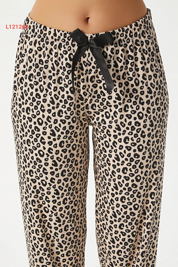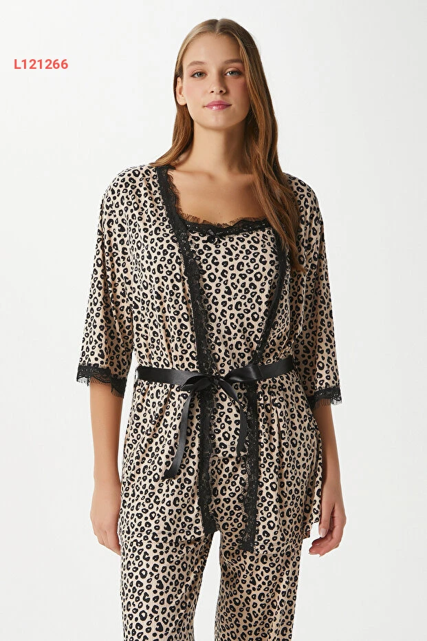 طقم بيجاما نسائي من ريتنيتس بيتي بنقشة الفهد - ثلاث قطع مع رداء وشرائط دانتيل