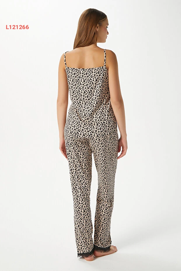 تمتعي بأناقة وراحة لا تضاهى مع طقم بيجامة Ritnice Kadın Betty! يتكون من ثلاثة قطع رائعة مزينة بتصميم الفهد العصري، مع حمالات رفيعة ونقوش دانتيل جذابة، مما يمنحك لمسة أنثوية ساحرة. يأتي القماش الناعم ليتناسب مع خزانة ملابسك، ليضمن لكِ نومًا مريحًا ومظهرًا أنيقًا في كل لحظة.