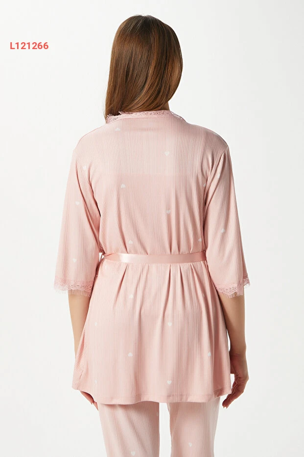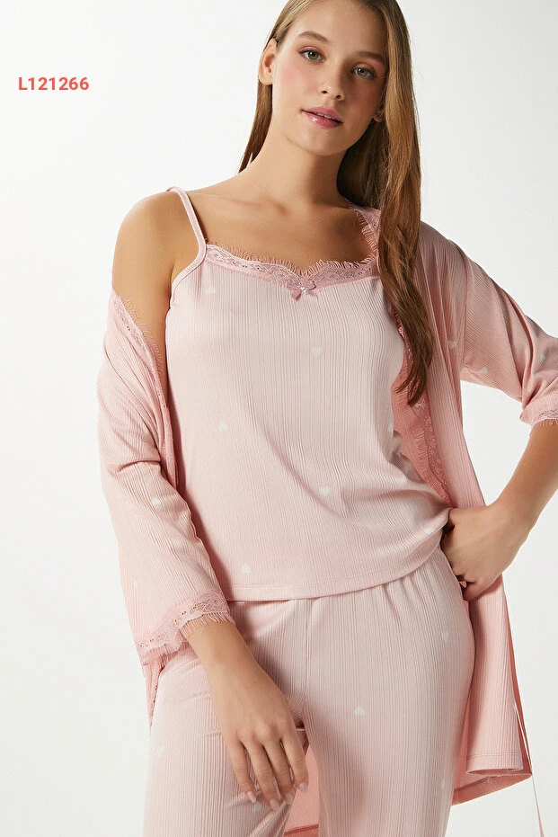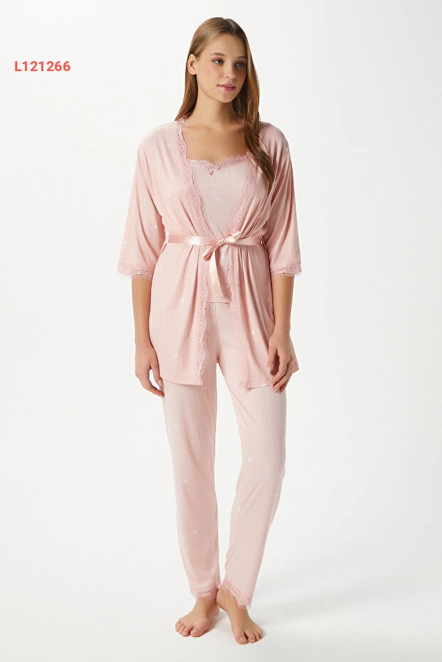 طقم بيجاما نسائي ثلاثي القطع ببطانة قلوب دانتيل من ريتنيتس