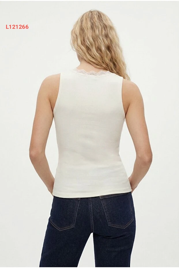 بلوزة أنيقة بدون أكمام مزينة بالدانتيل وتفاصيل الفخامة من ريتنيك
