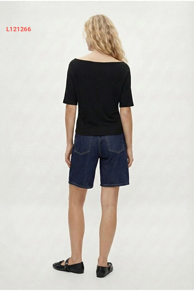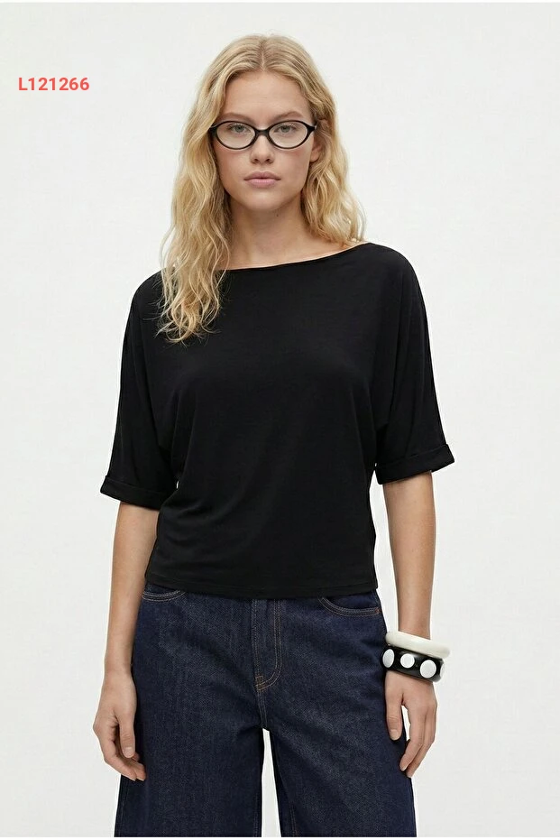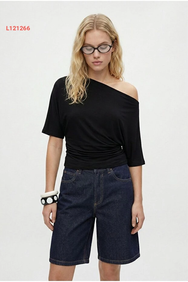 بلوزة نسائية سوداء بتفاصيل كتف غير متساوية من ريتنيك