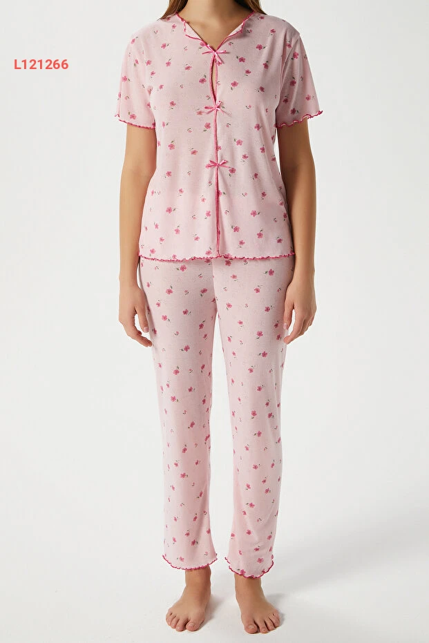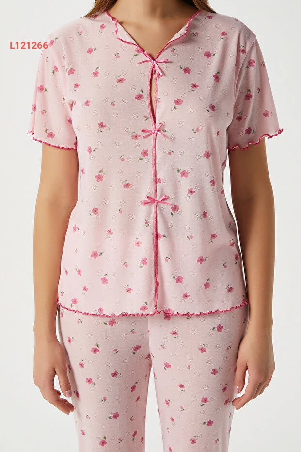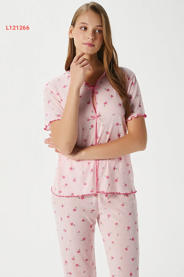 استمتعي بأمسية من الراحة والأناقة مع طقم البيجامة النسائي من Ritnice، المزود برباط أنيق وزهور وردية ناعمة. مصنوع من قماش ناعم يوفر لكِ شعورًا بالراحة طوال الليل، حيث يجمع بين الجمال والراحة ليمنحك طلة رائعة حتى في ساعات النوم. ارتدي هذه البيجامة لتضيفي لمسة من الأنوثة إلى لياليك.