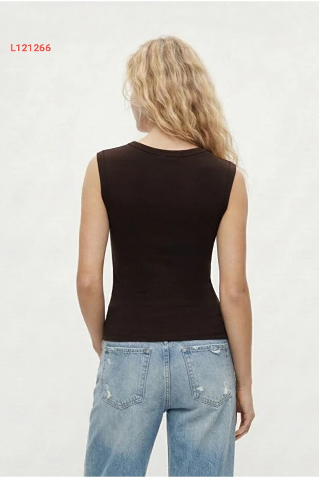 بلوزة ريتنس ماريوت الفاخرة بلمسة فاخرة بياقة على شكل V بدون أكمام باللون البني
