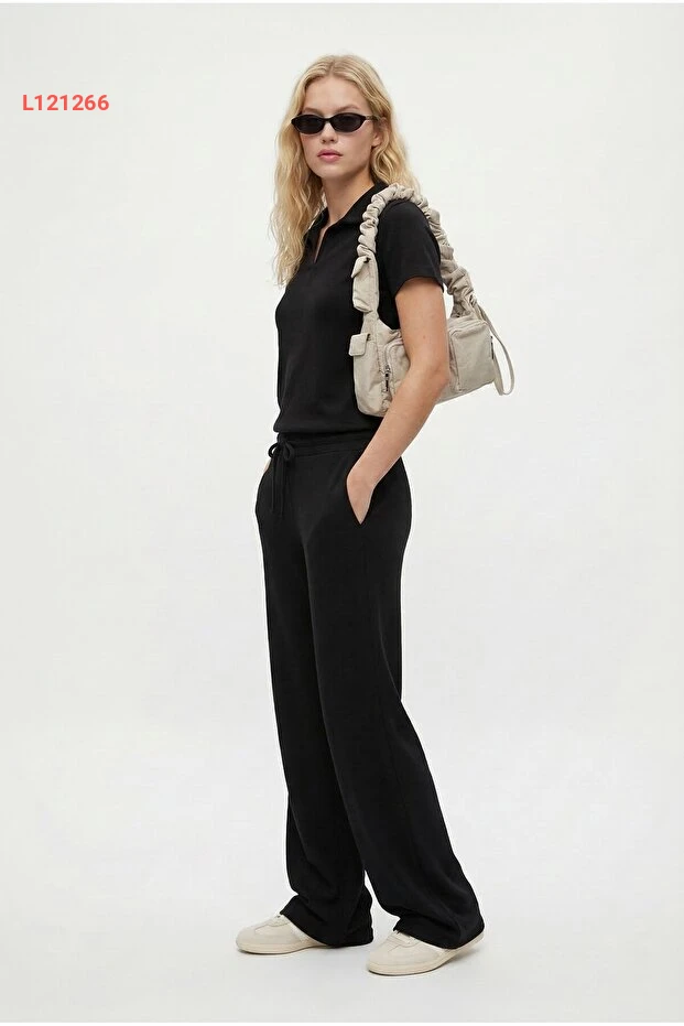 استمتعي بالأناقة والراحة مع طقم "Ritnice Kadın Nadia" الذي يأتي بتصميم بولو ياقه عصري وقماش مودال ناعم. تفاصيل الخصر المرن والجيوب الجانبية تعزز من راحة الاستخدام وتضفي لمسة عملية، مما يجعله خياراً مثالياً للاستخدام اليومي أو للمناسبات غير الرسمية. ارتدي الثقة والأناقة مع هذا الطقم الأسود الأنيق!