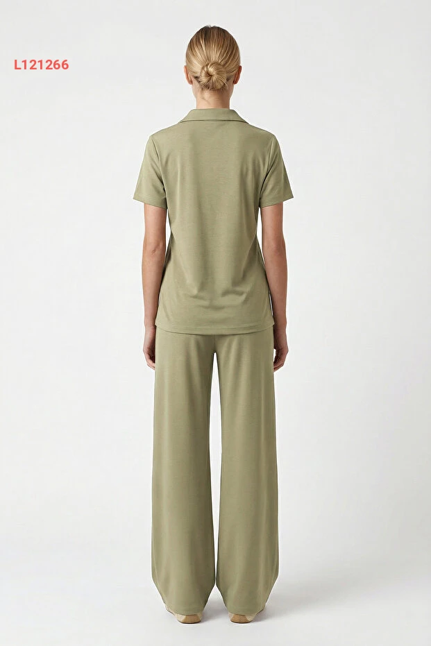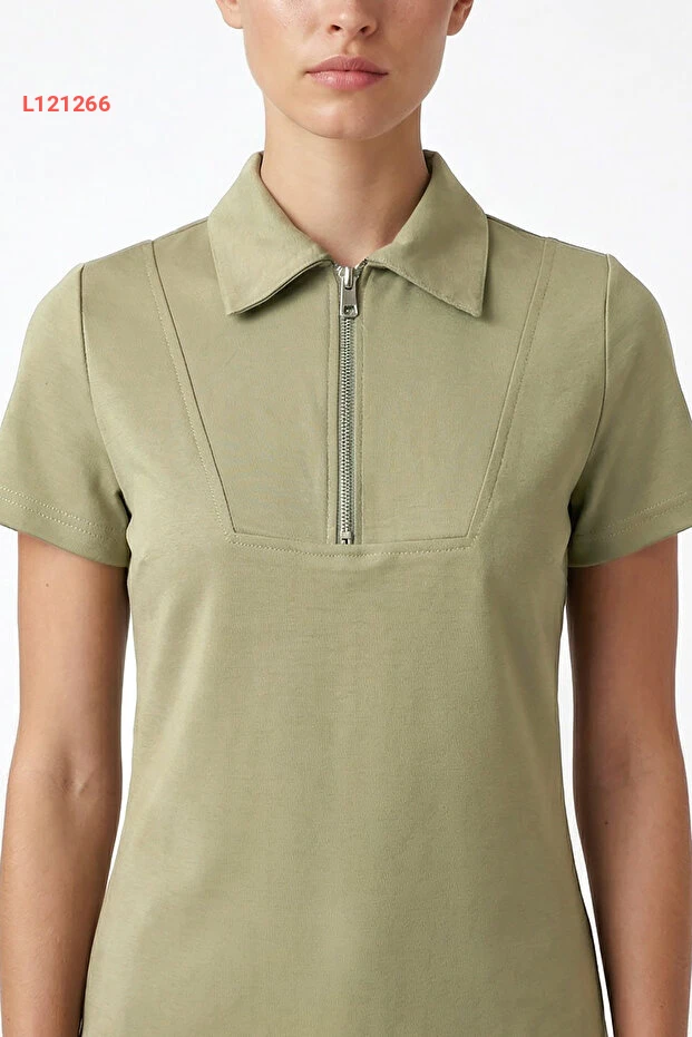 بدلة نسائية نولا من مودال بلمسة ناعمة بياقة بولو وسحاب، بخصر مطاطي وجيوب - لون حاكي