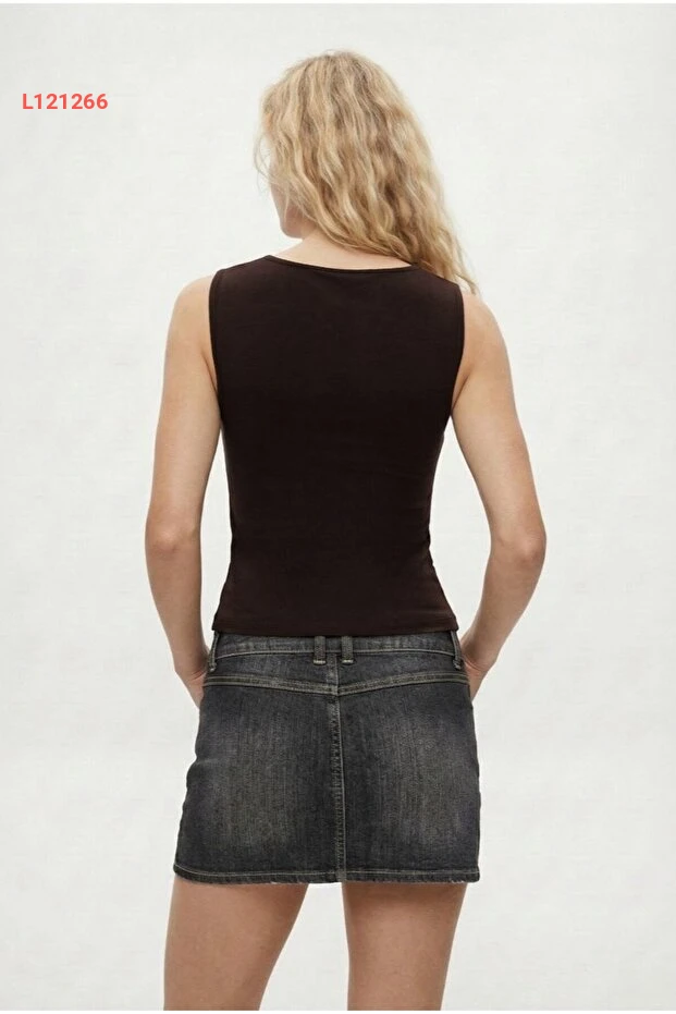 بلوزة نسائية فاخرة بدون أكمام بتفاصيل مخفية باللون البني