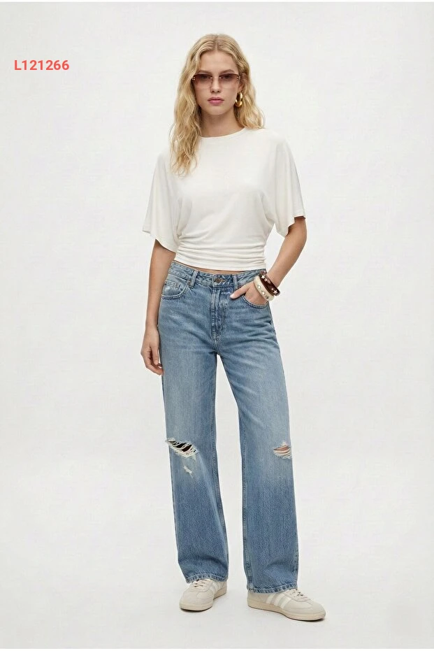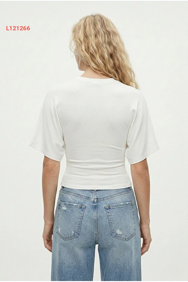 بلوزة نسائية قصيرة الأكمام بتصميم عصري من ريتنس، بياقة دائرية ولون عاجي