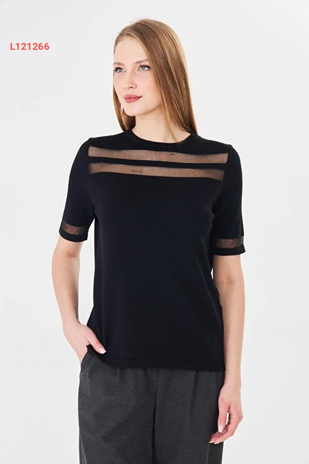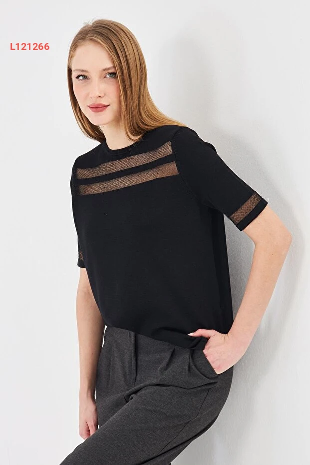 استمتعي بأناقتك مع بلوزة إيرماك النسائية ذات العنق الدائري، التي تجمع بين الأناقة والراحة. تصميمها المكون من تفاصيل شفافة وأكمام قصيرة يضفي لمسة عصرية تناسب كل المناسبات. في اللون الأسود الكلاسيكي، تعتبر الخيار المثالي لإطلالة متألقة ومميزة.