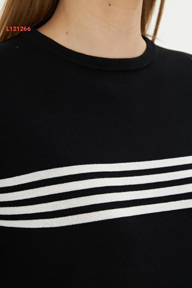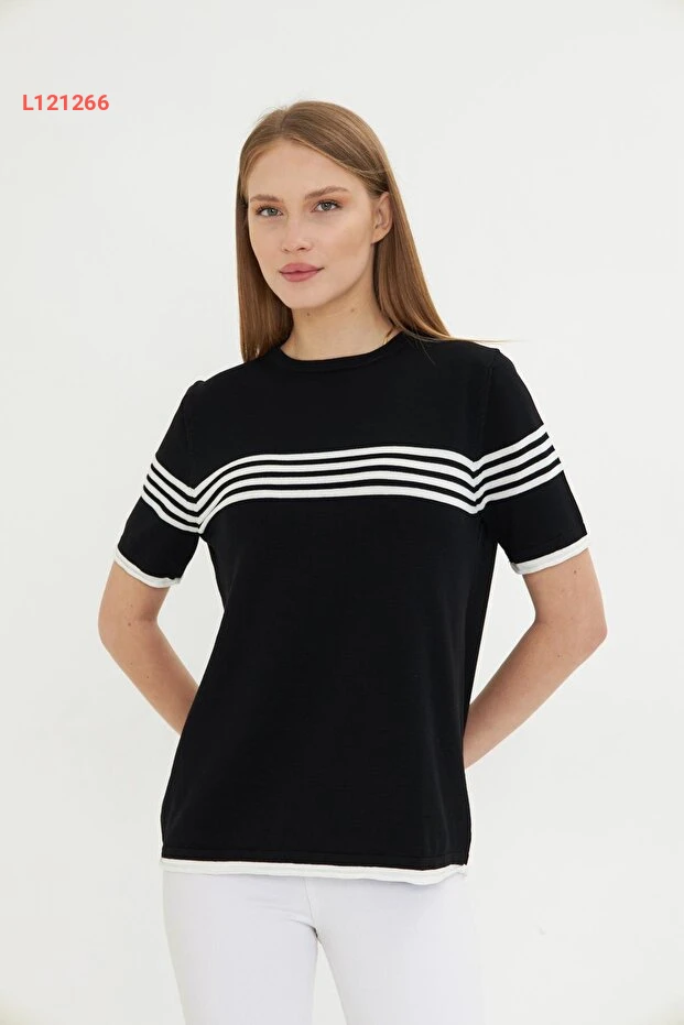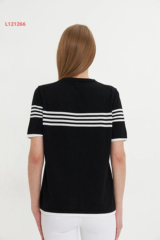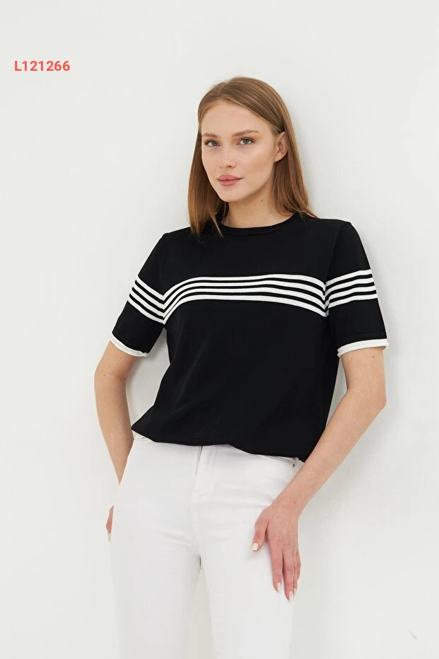 استمتعي بإطلالة أنيقة ومريحة مع بلوزة Irmak الكاجوال ذات الياقة الدائرية والأكمام القصيرة. تتميز بتصميم مخطط جذاب باللونين الأسود والأبيض، مما يضيف لمسة من الأناقة العصرية لمجموعتك. صممت من قماش مريح يناسب جميع الأوقات، لتكون الخيار المثالي لكل من يبحث عن الجمع بين الأناقة والراحة.