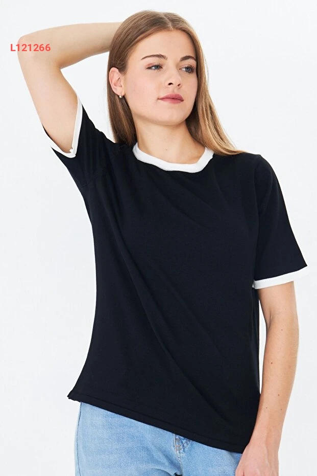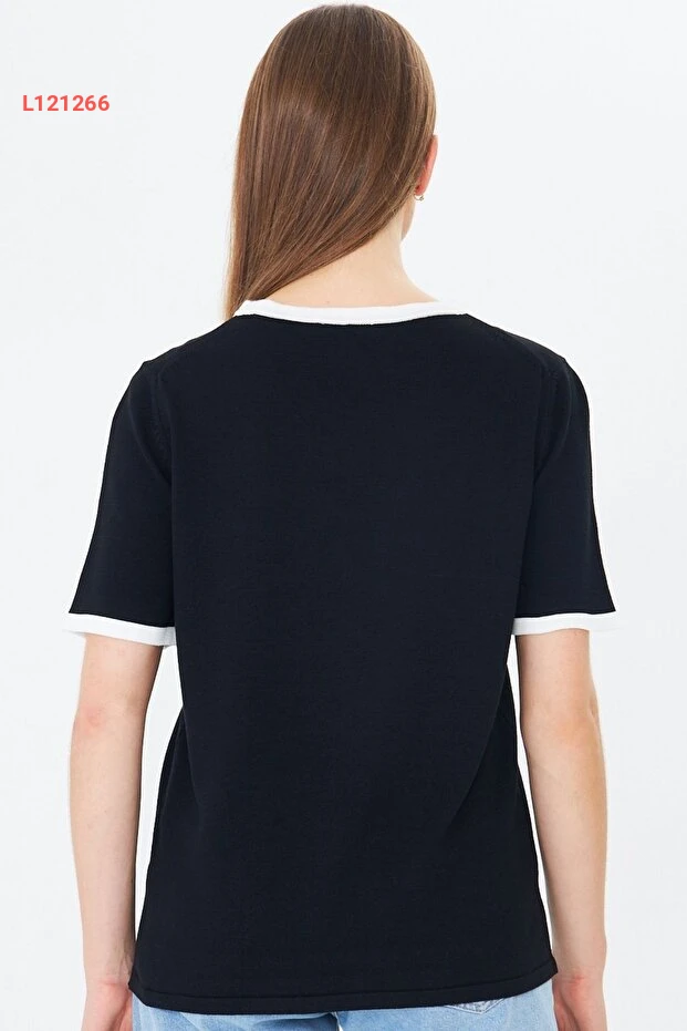 بلوزة قصيرة الأكمام بتصميم ملون وحواف أنيقة من إيرماك