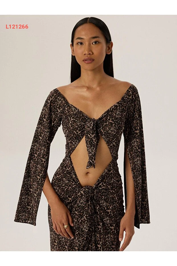 تألق بإطلالة جريئة مع فستان Rivus ذو التصميم الفريد، حيث يتميز بقصة طويلة وأزرار ربط أمامية تضفي لمسة من الأناقة. يأتي هذا الفستان بنقشة الفهد الجذابة، مما يجعله الخيار المثالي لإضفاء لمسة من الجاذبية والأنوثة على إطلالتك في مختلف المناسبات.