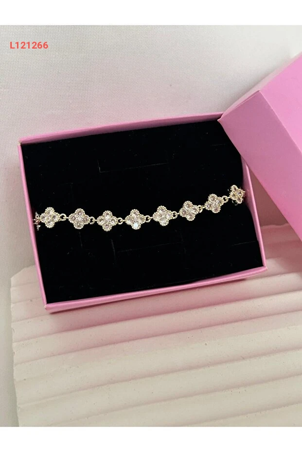 سوار زهرة البرسيم المرصع من رويّا - باللونين الذهبي والفضي، هدية أنيقة للحبيب مع علبة فاخرة