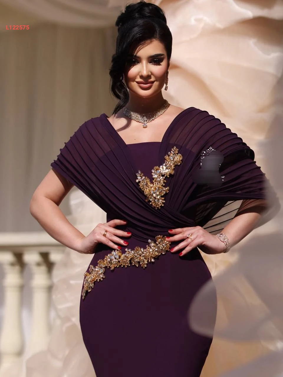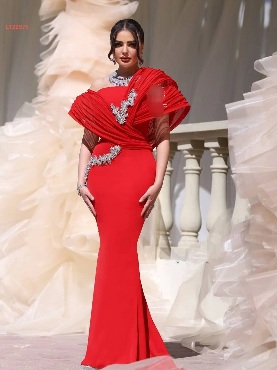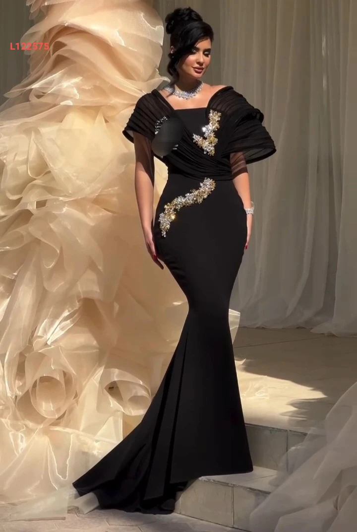 فستان سهرة ملكي مع شيفون وأحجار