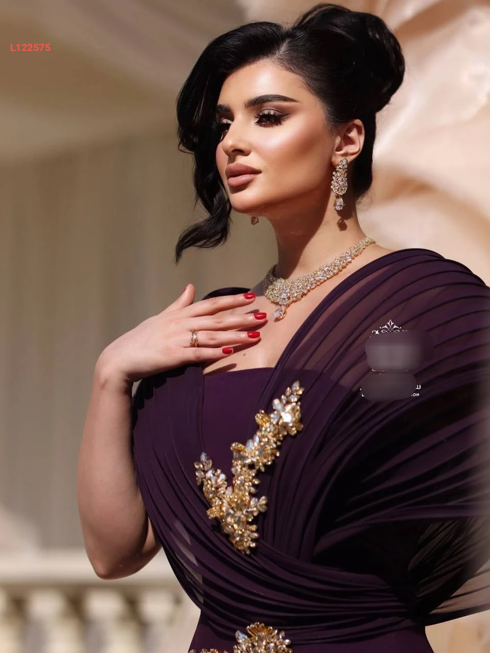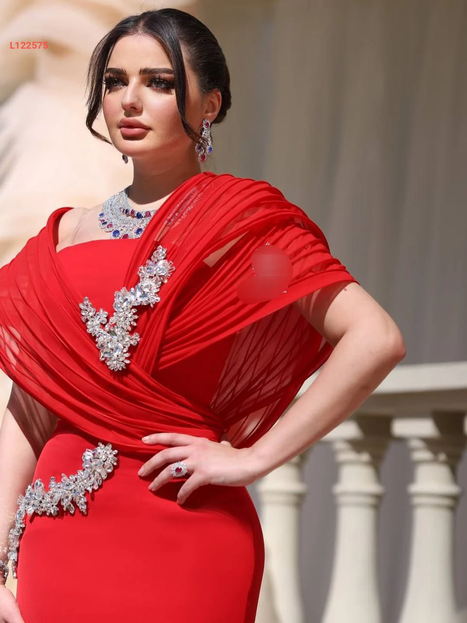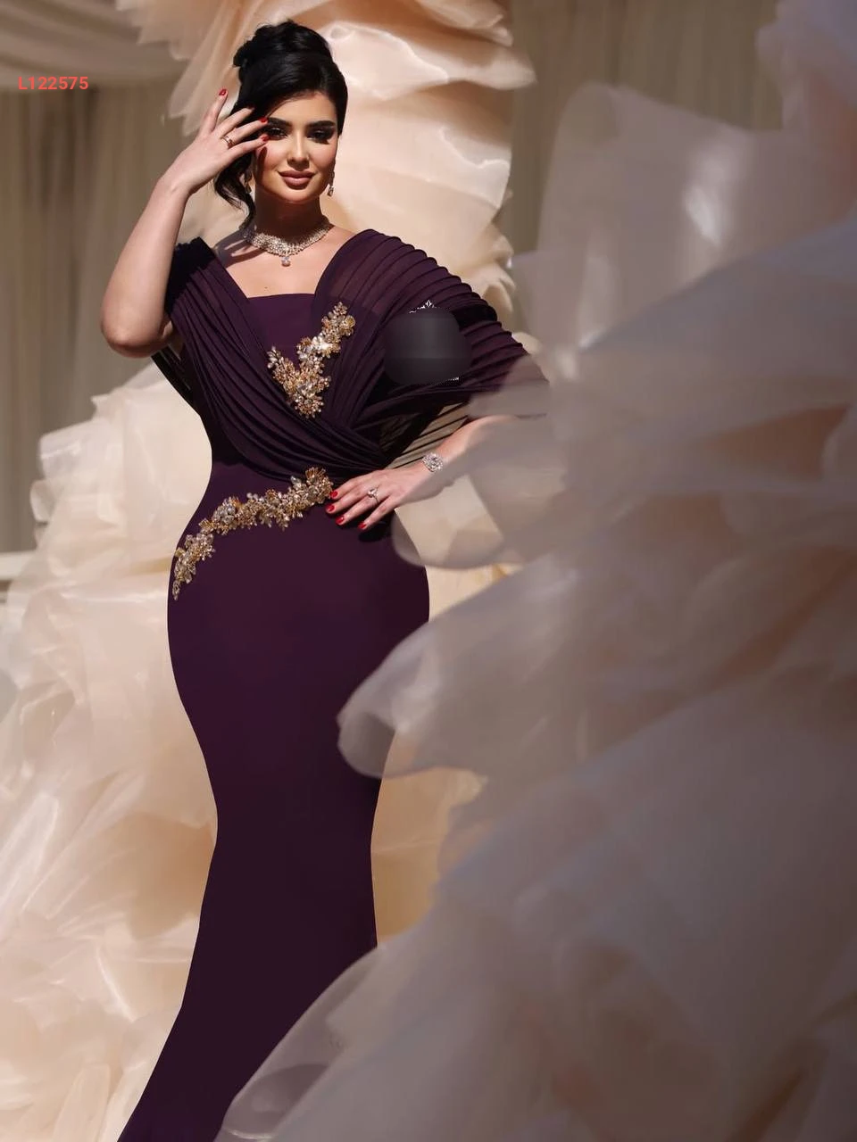 فستان سهرة ملكي مع شيفون وأحجار