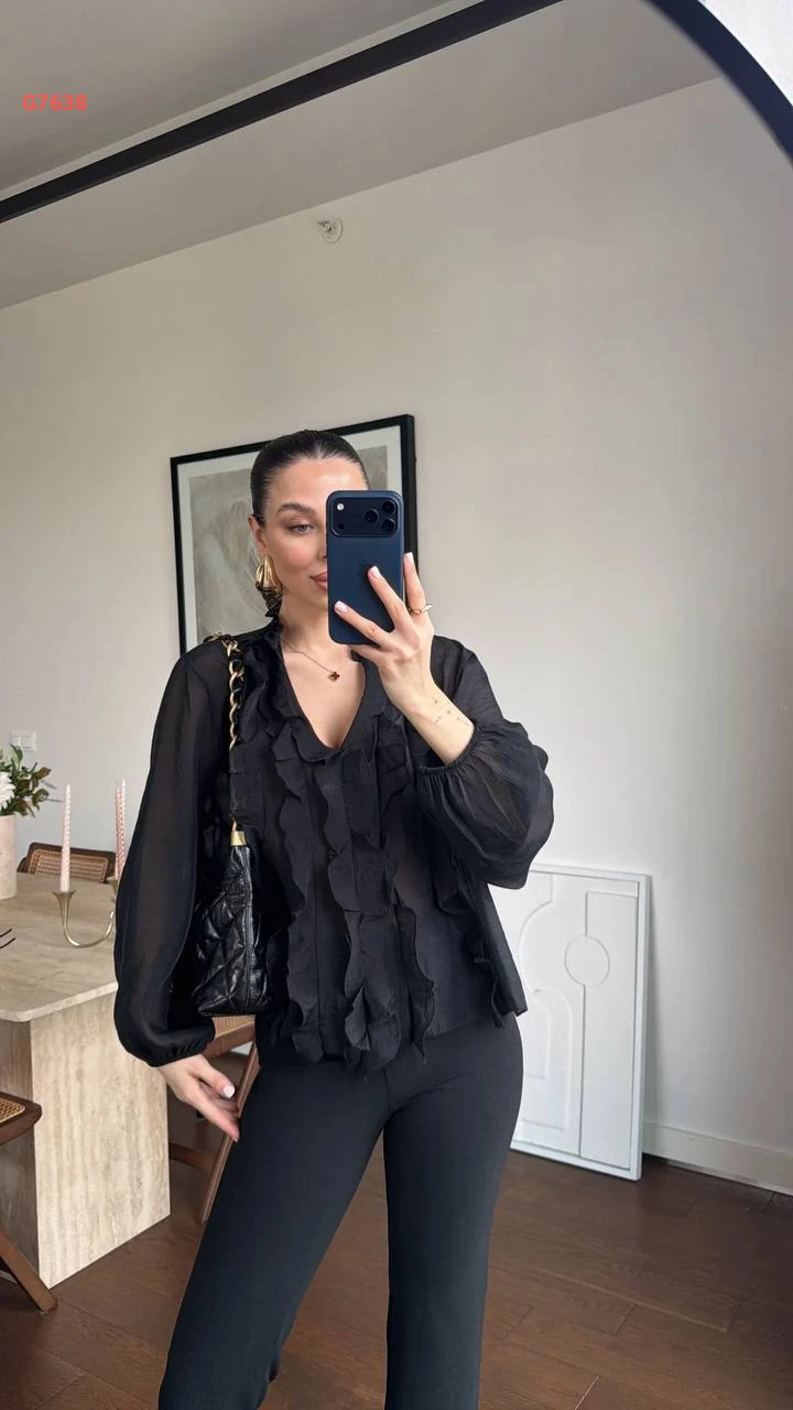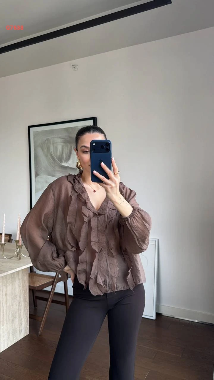 بلوزة كشكش بأكمام بالونية