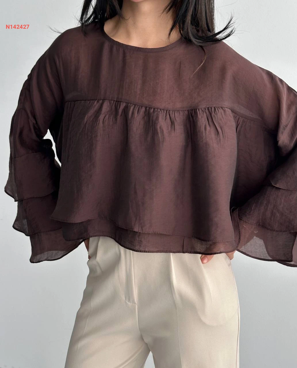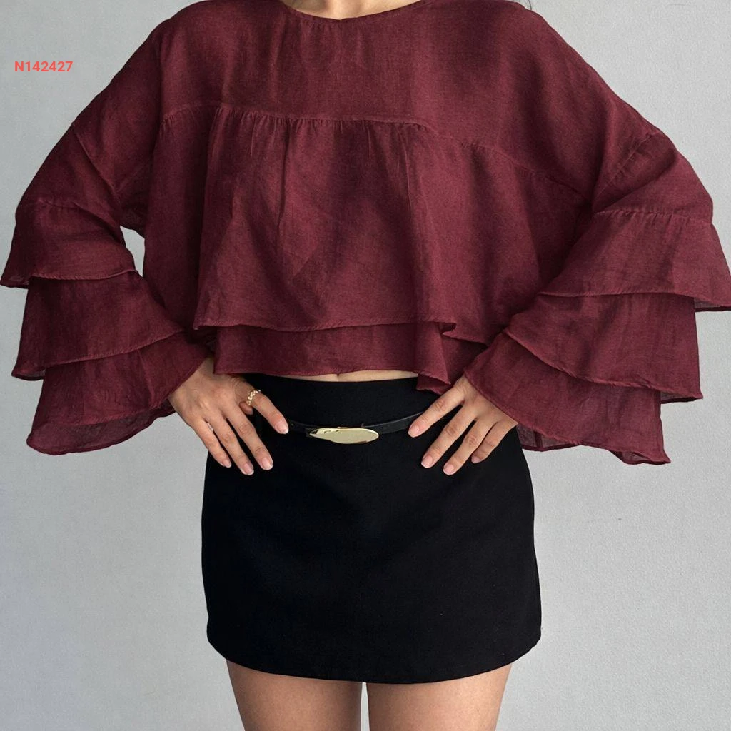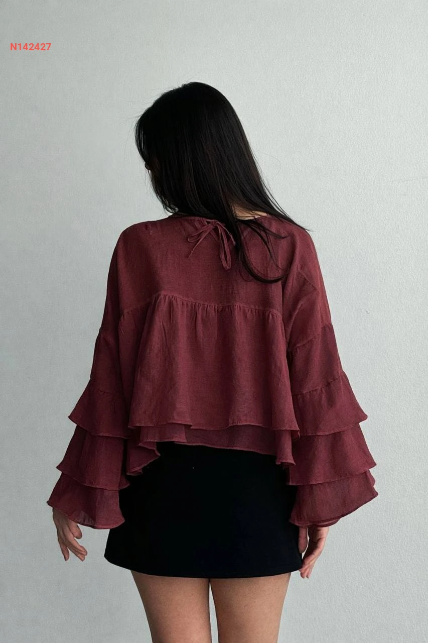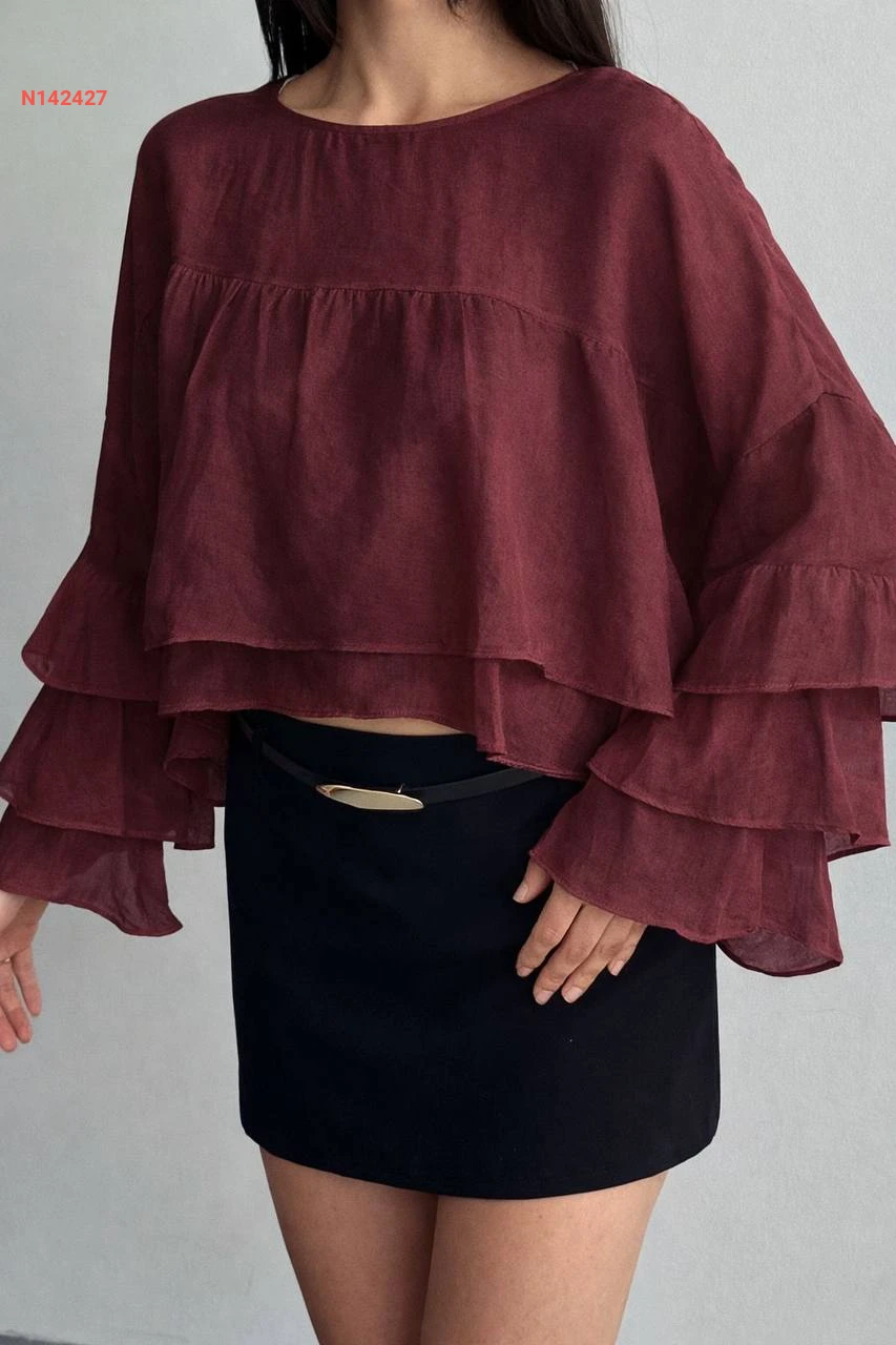 بلوزة مكشكشة بأكمام طويلة
