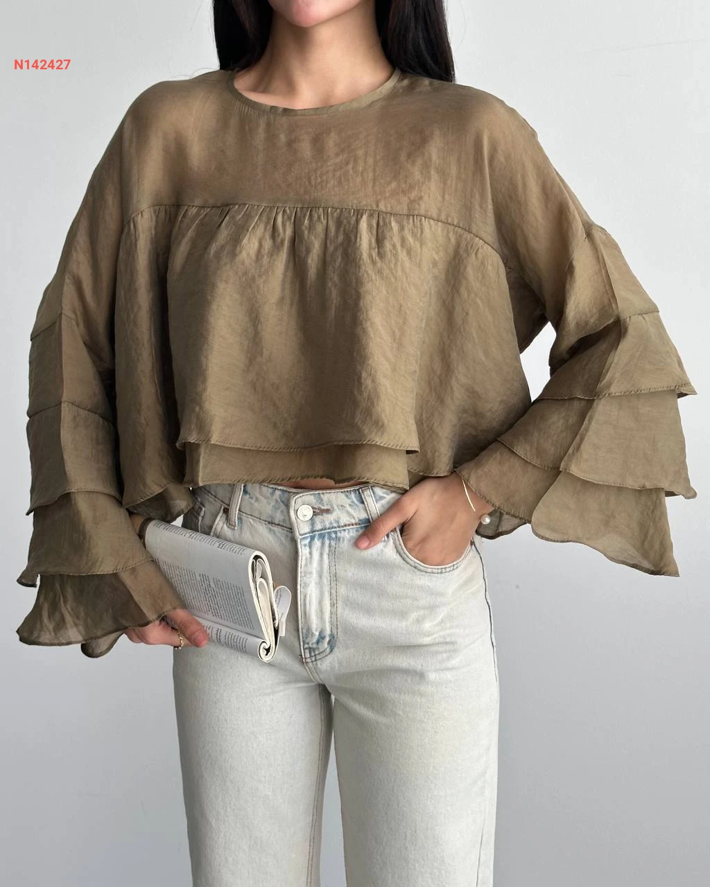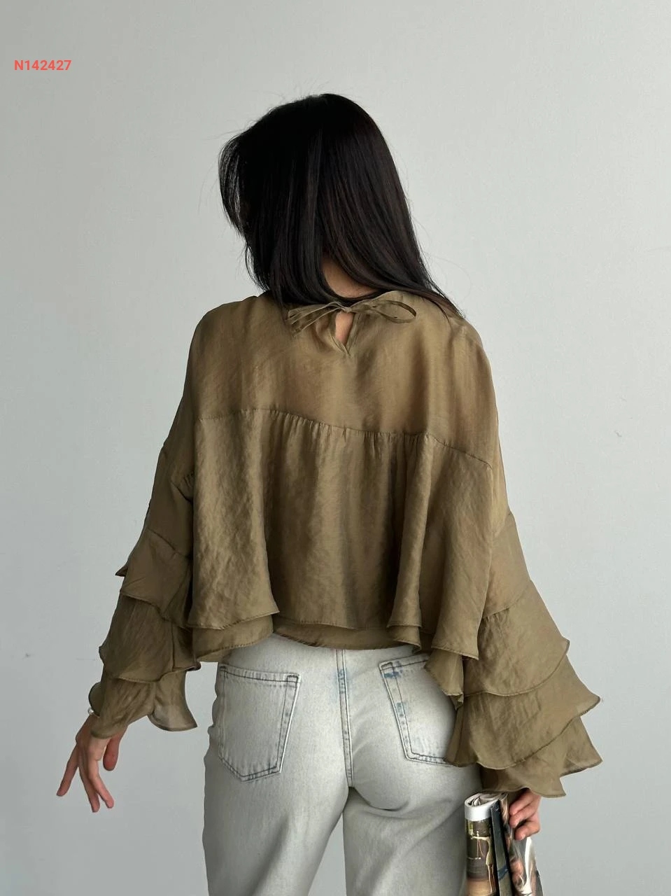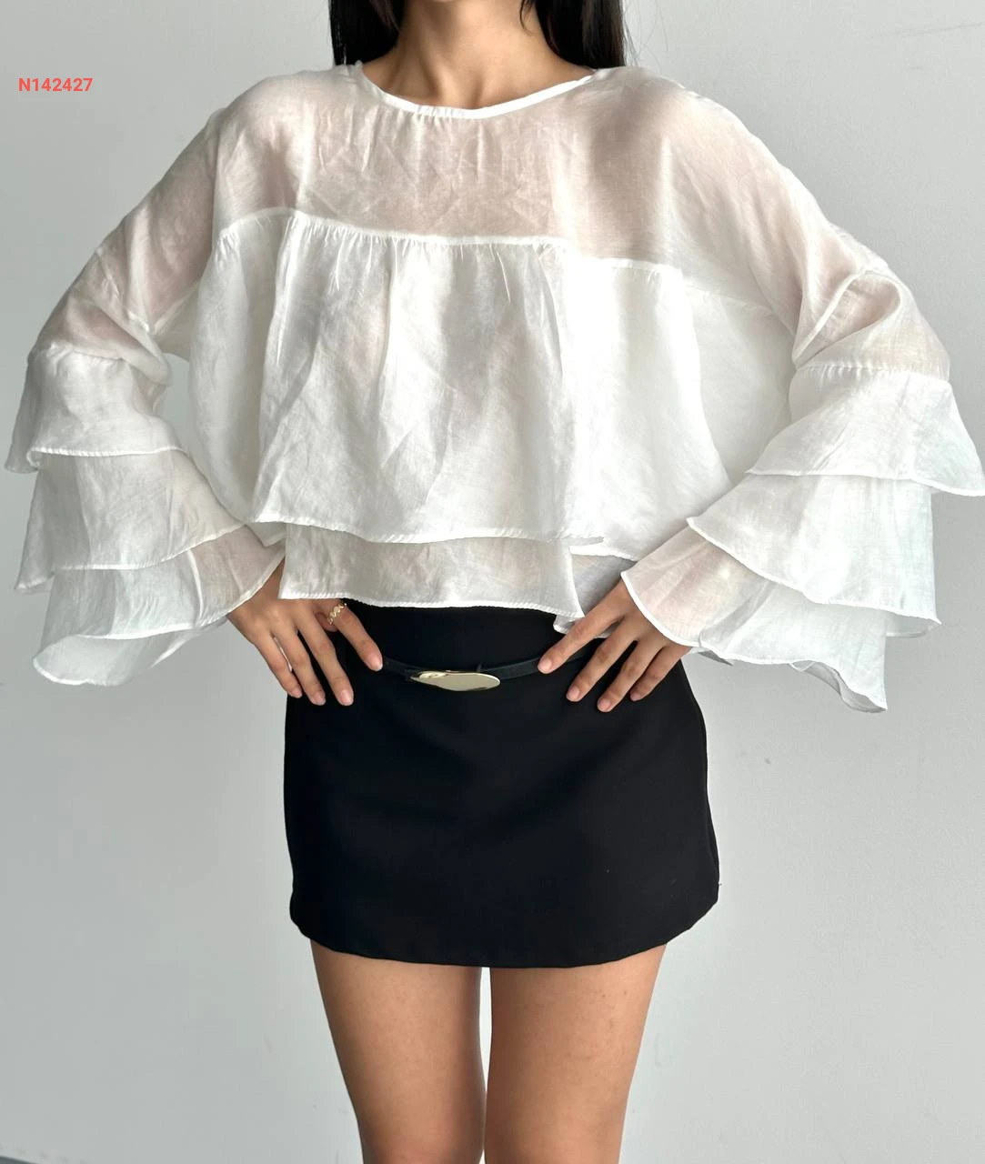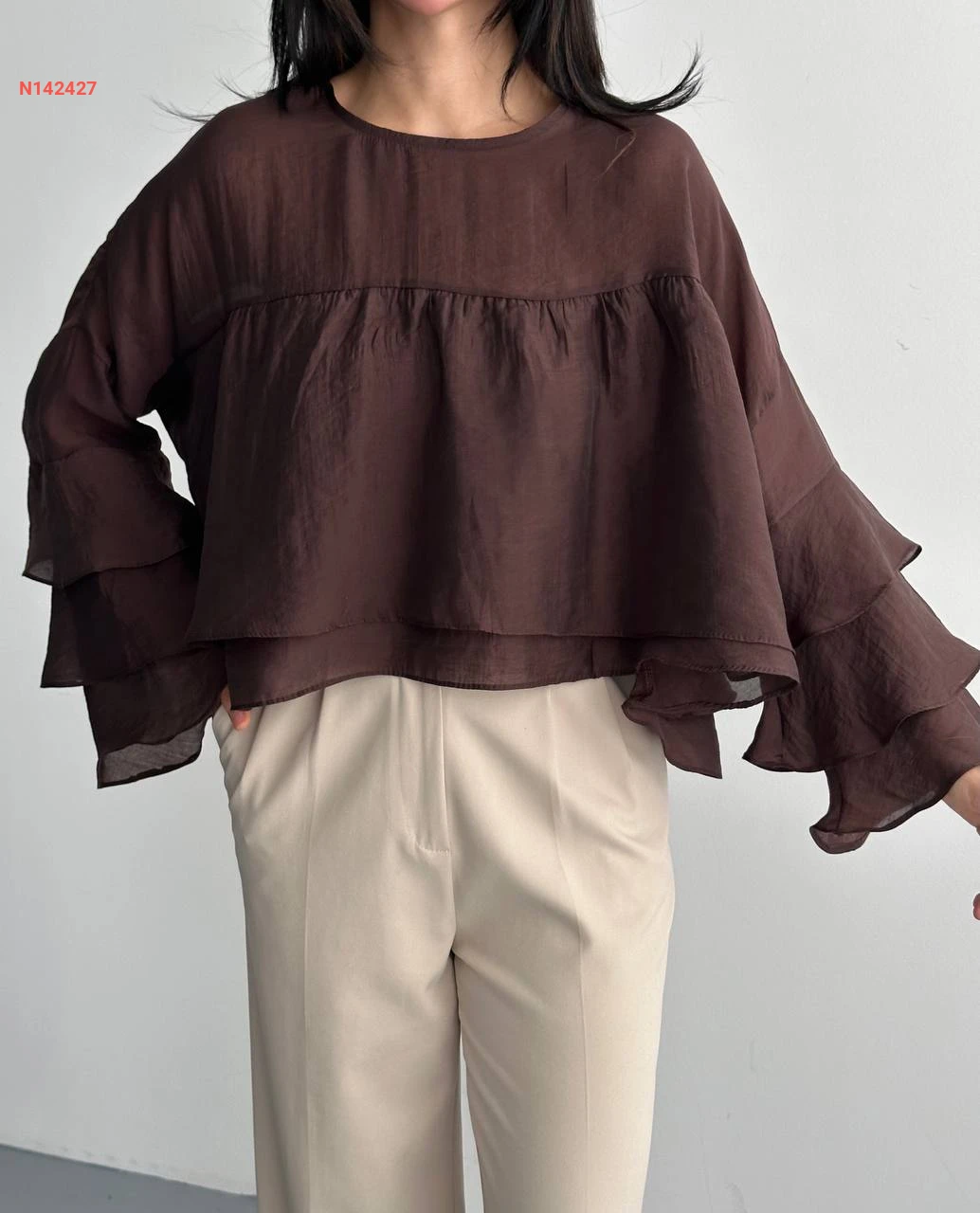 بلوزة مكشكشة بأكمام طويلة