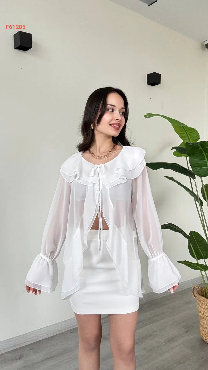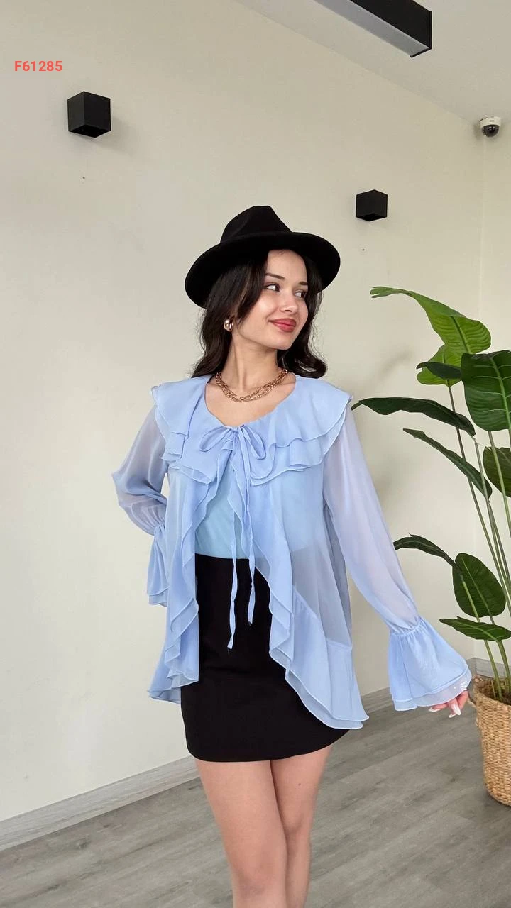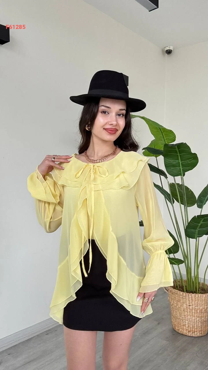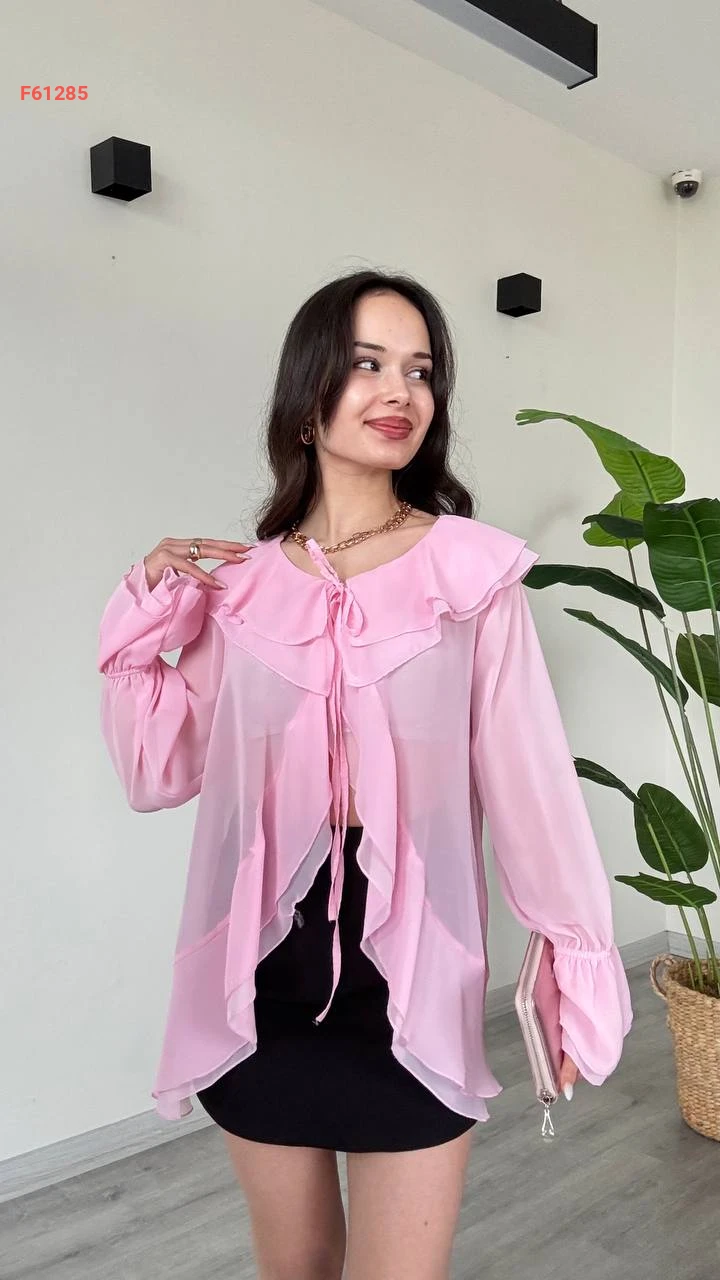 بلوزة شيفون مكشكشة بربطة