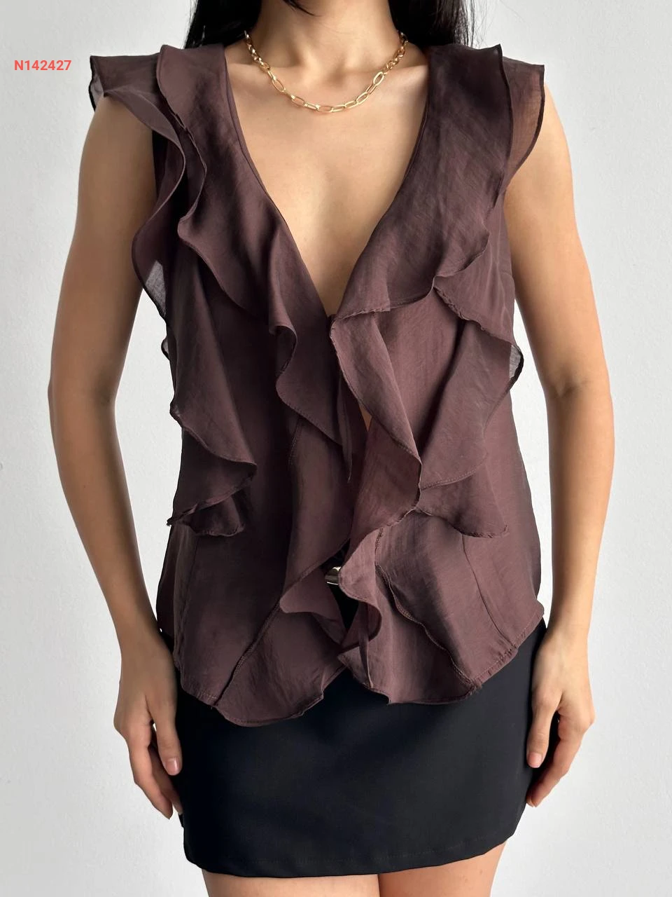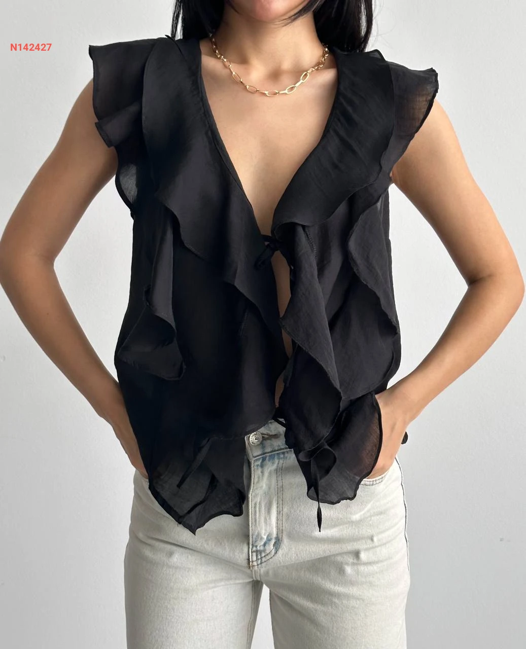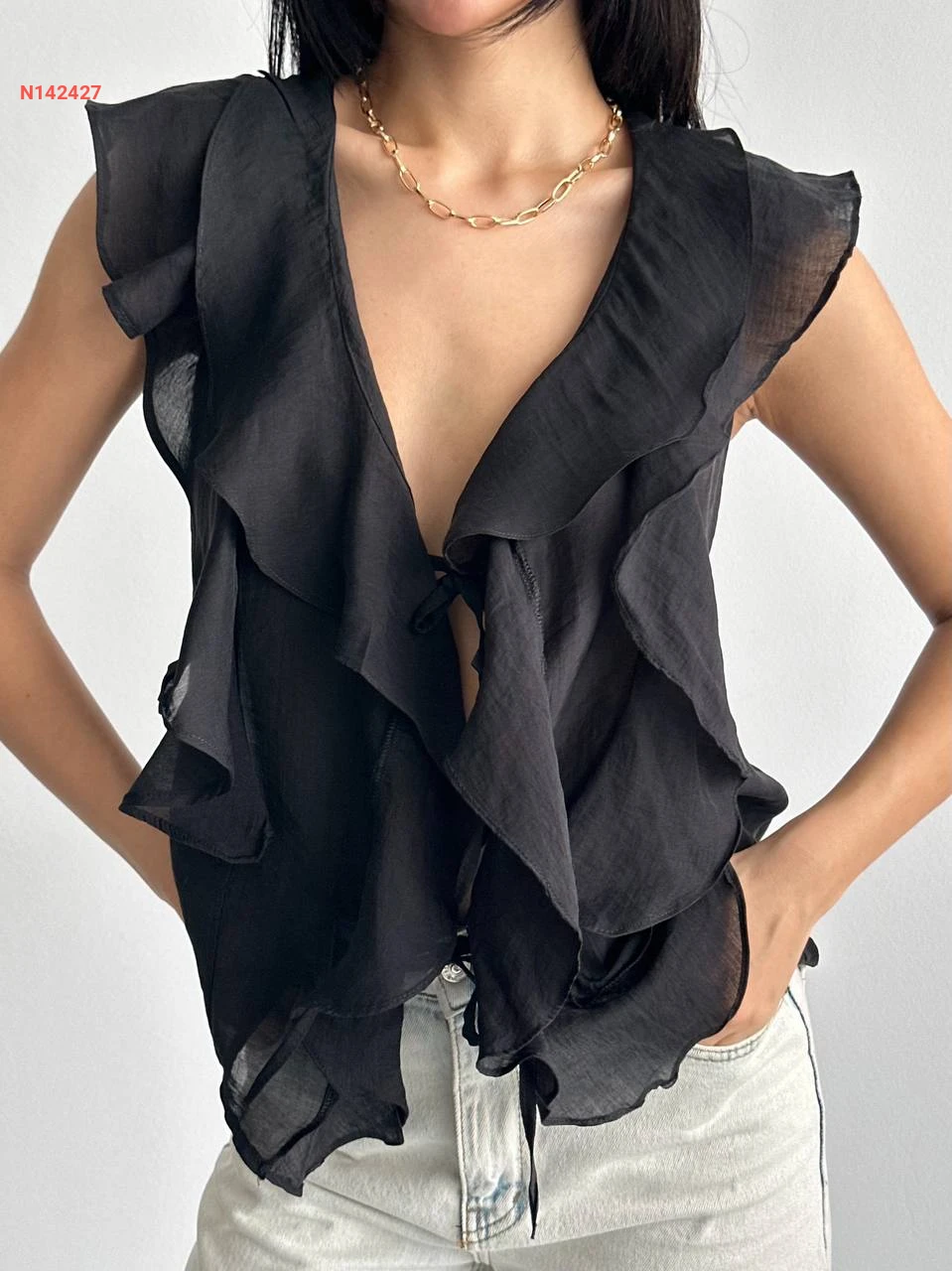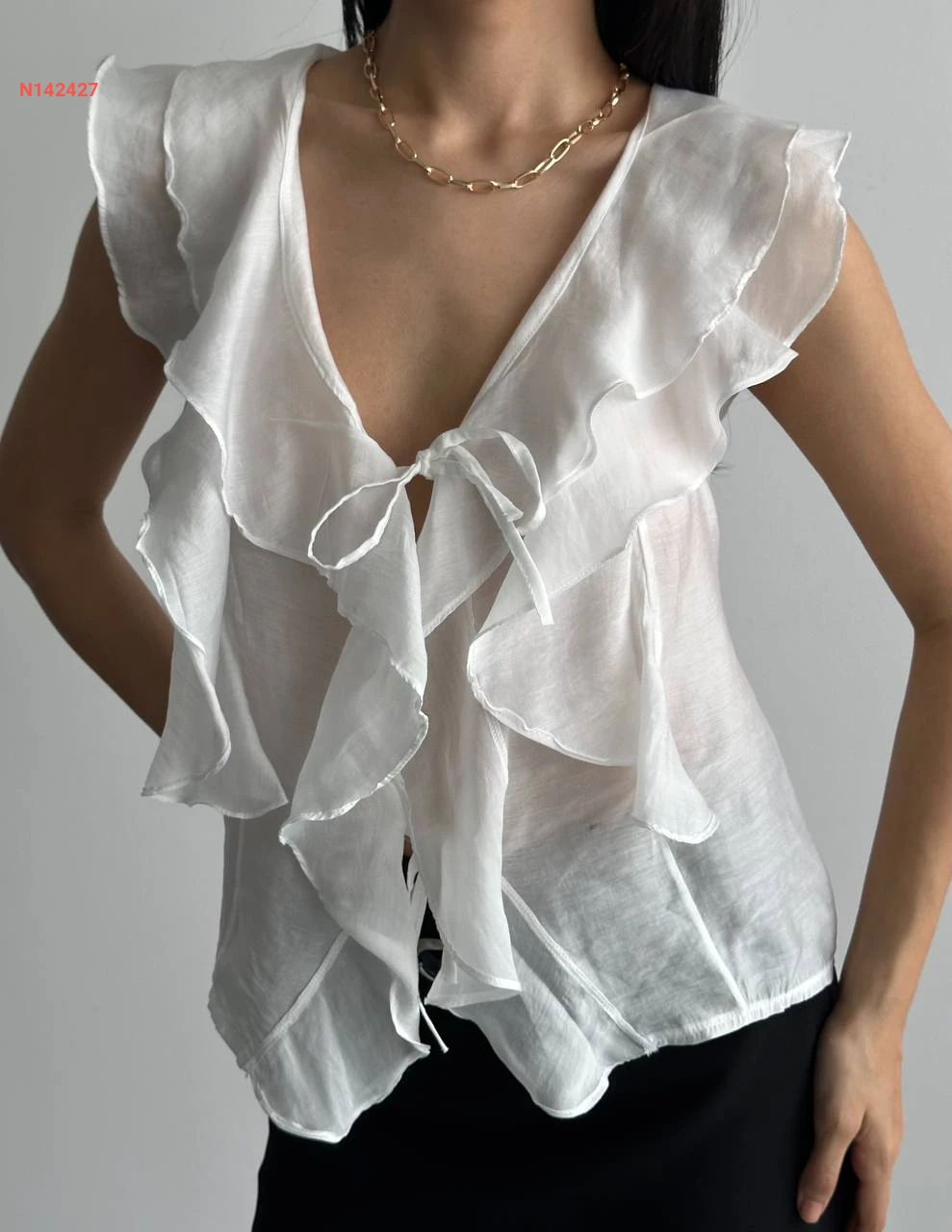 بلوزة حفر مكشكشة بربطة