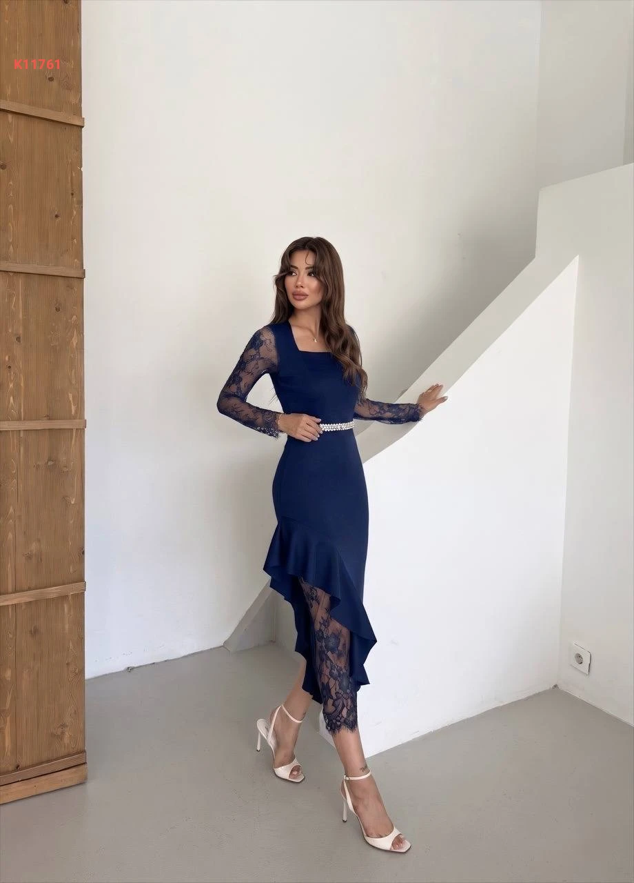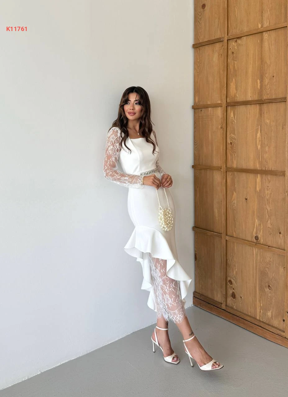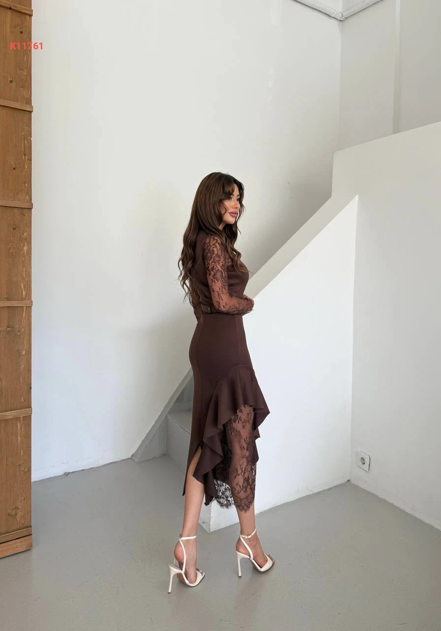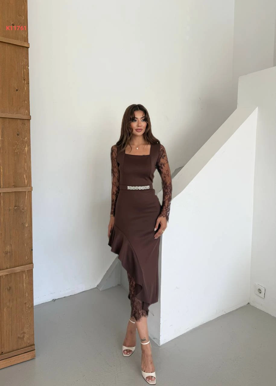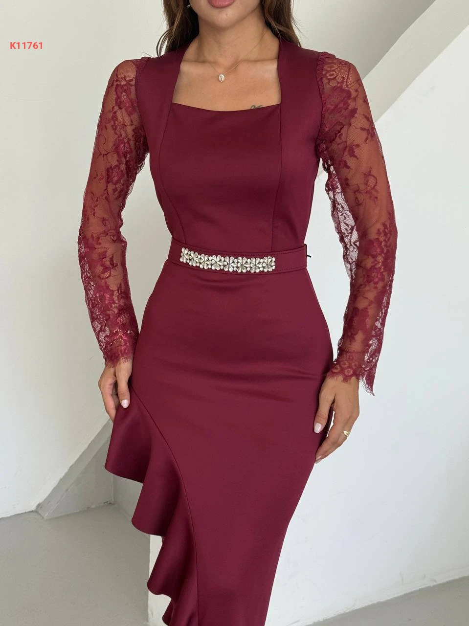 فستان كشكش مع تفاصيل دانتيل وأحجار
