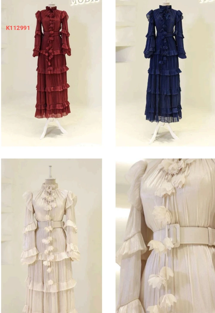 فستان سهرة كشكش مزين ورد