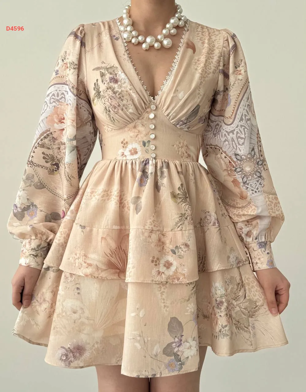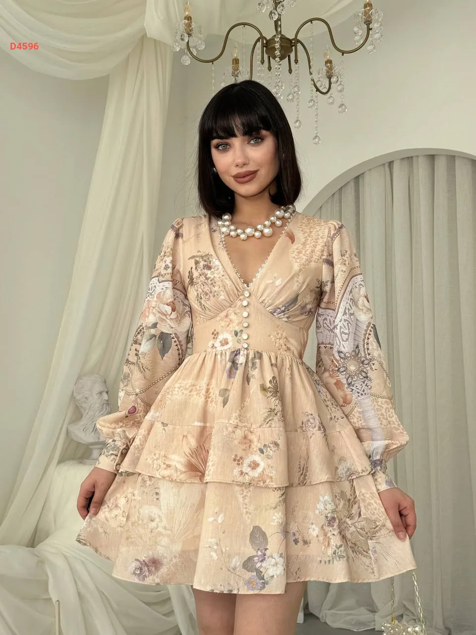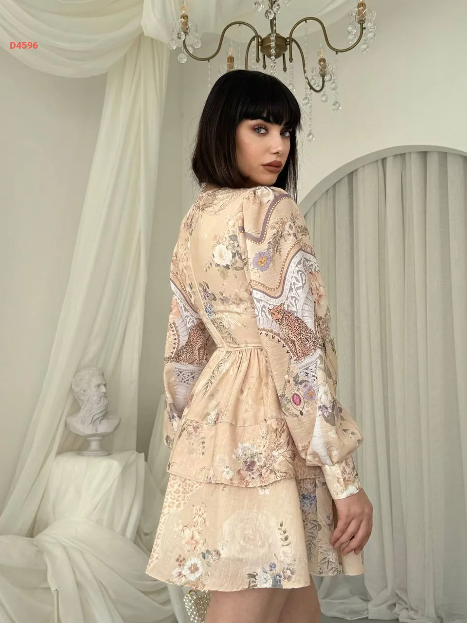 فستان قصير كشكش منقوش