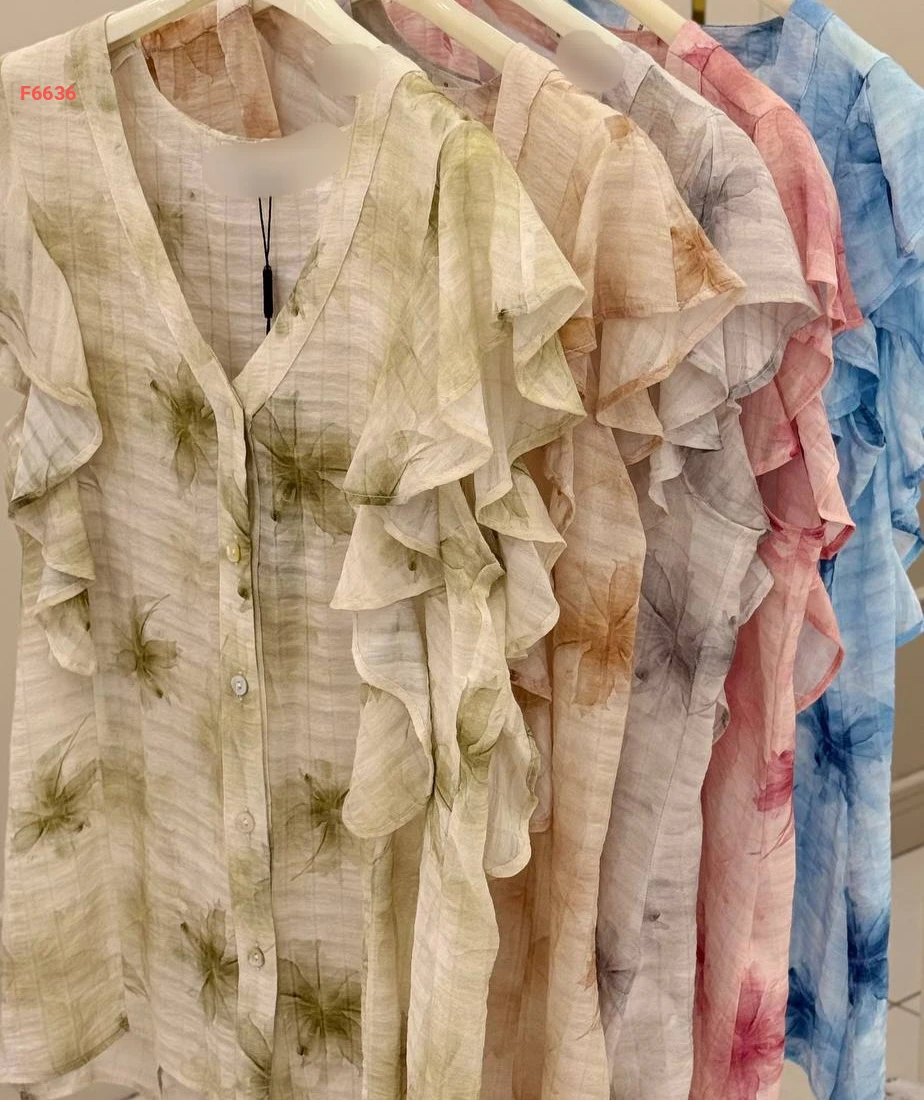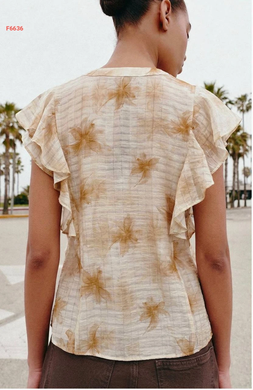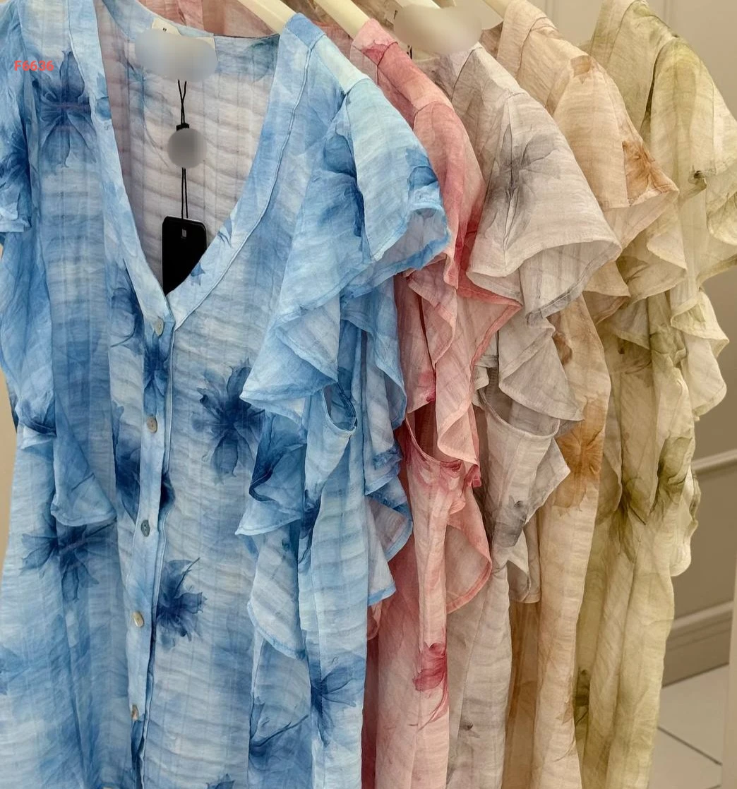 قميص صيفي كشكش منقوش