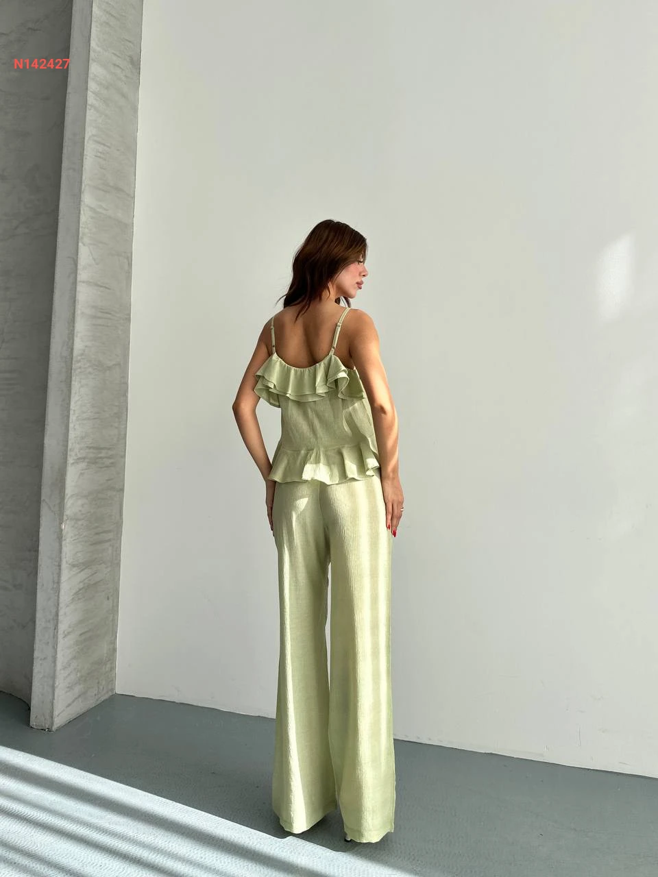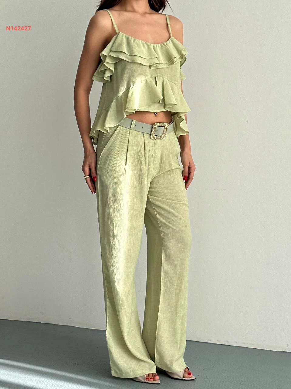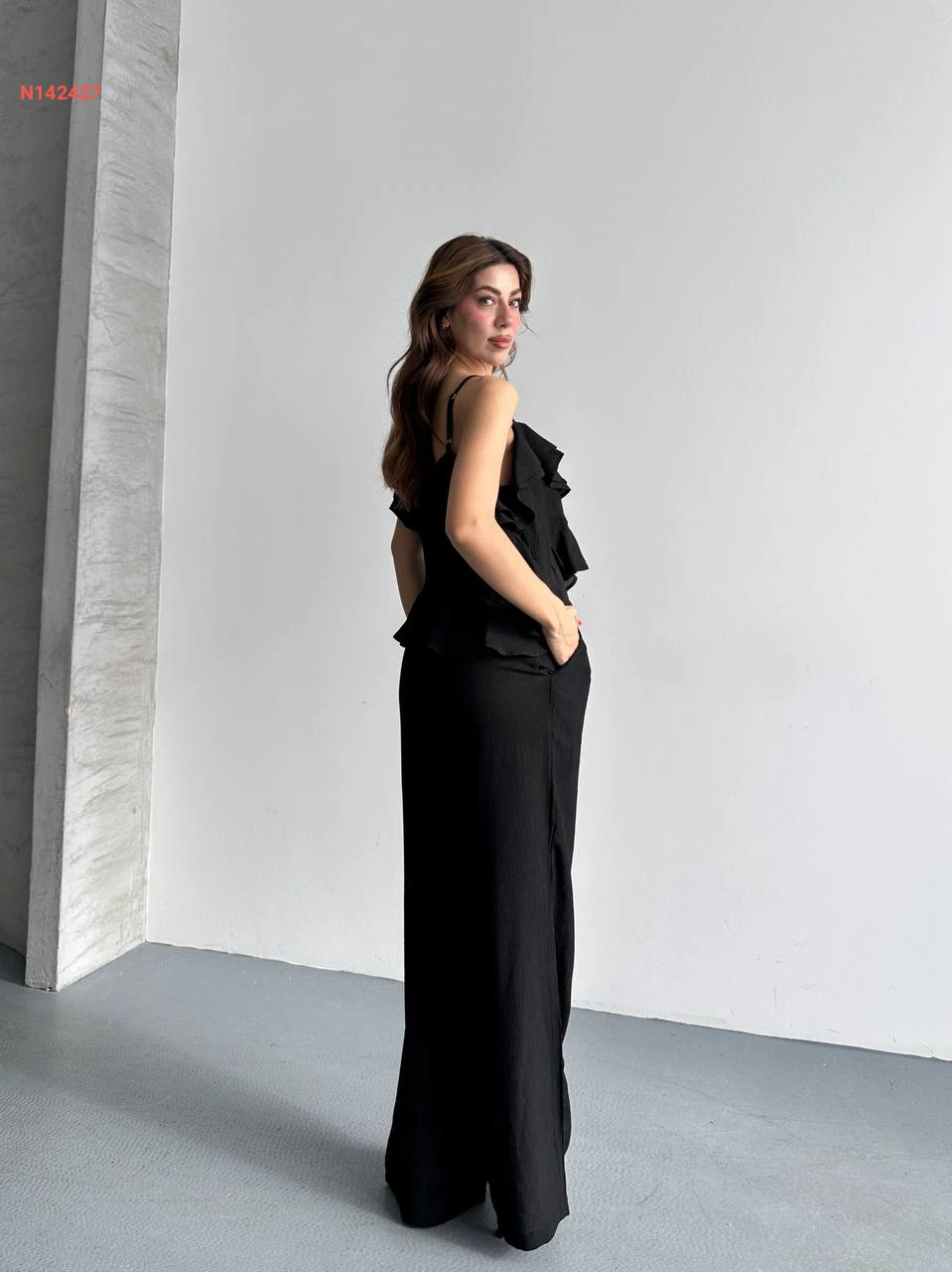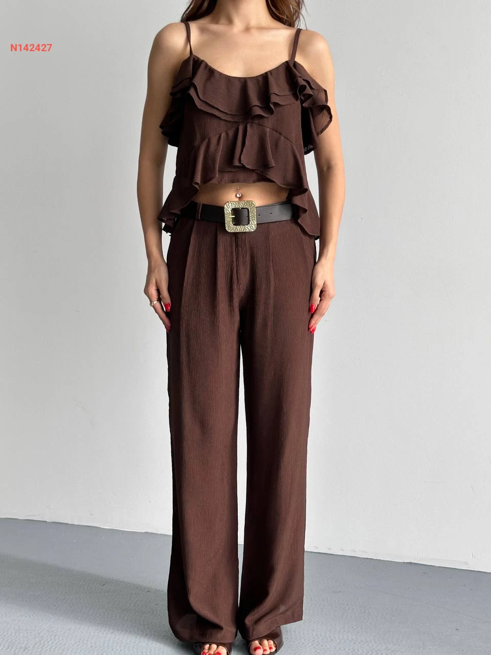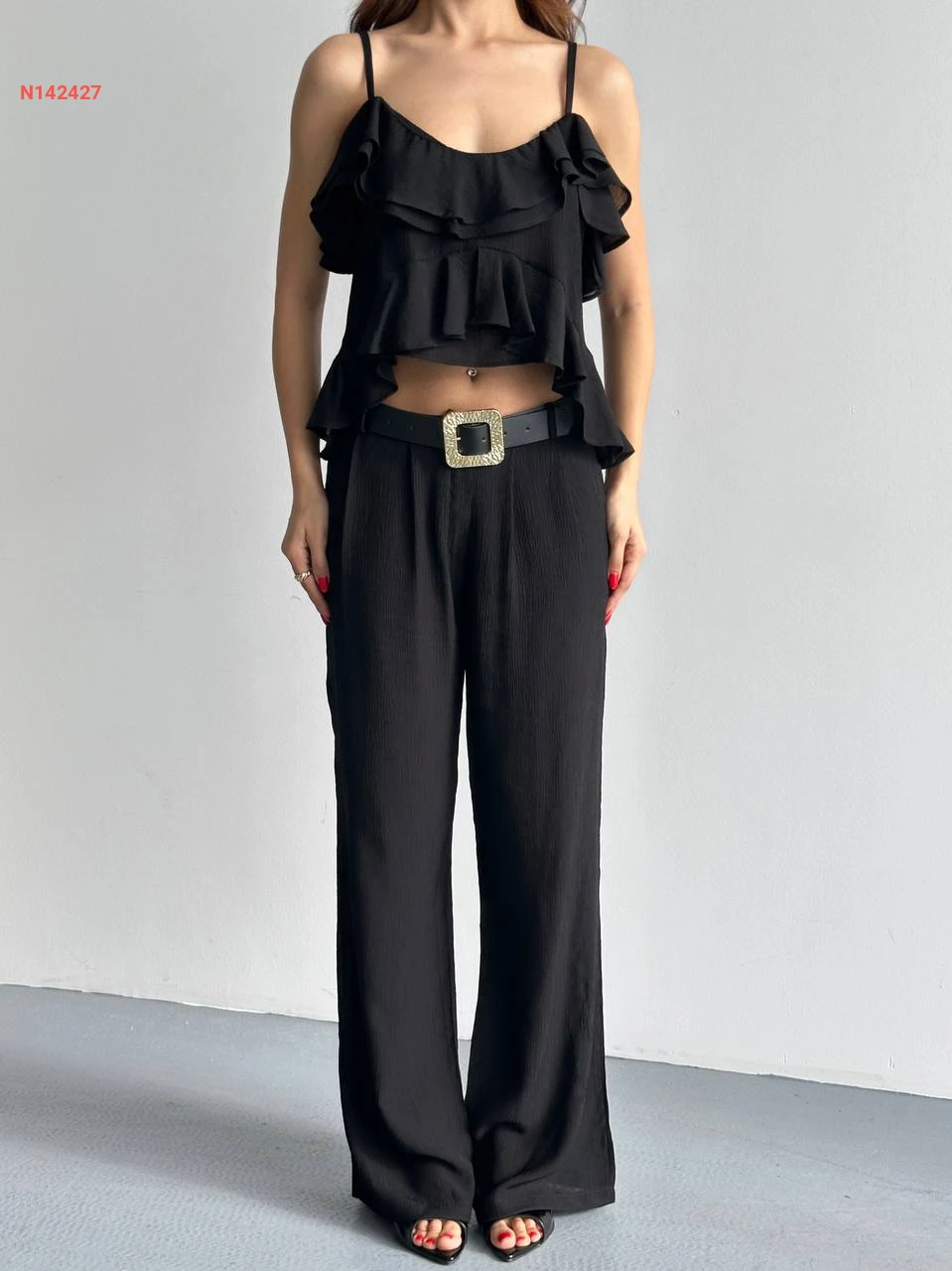 طقم بنطال وبلوزة حفر مكشكشة