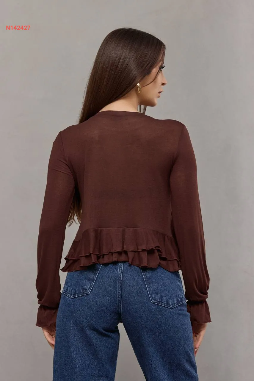 بلوزة شفافة مكشكشة