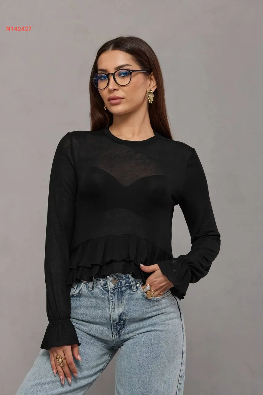 بلوزة كم طويل شفافة