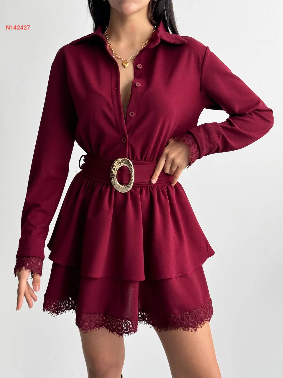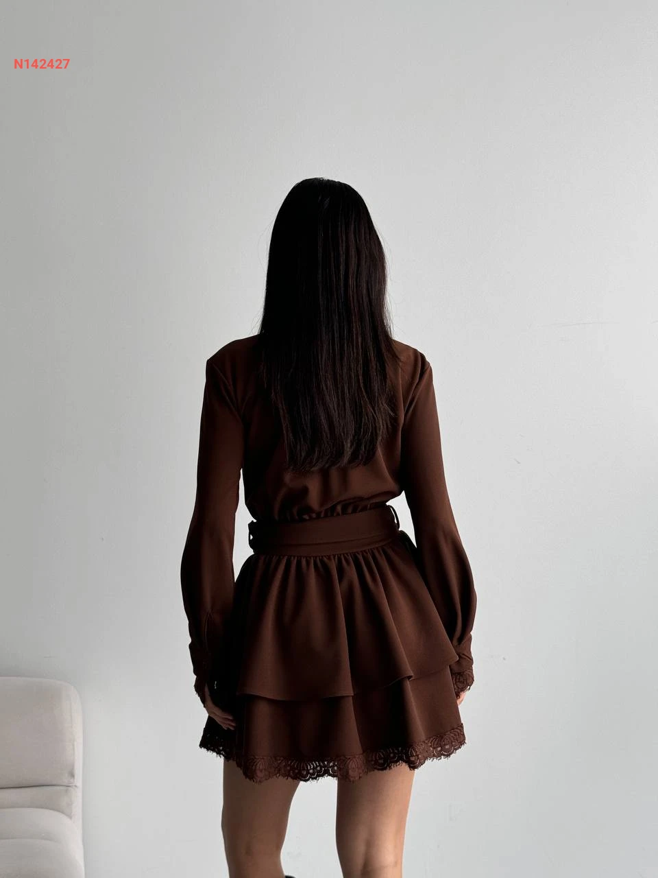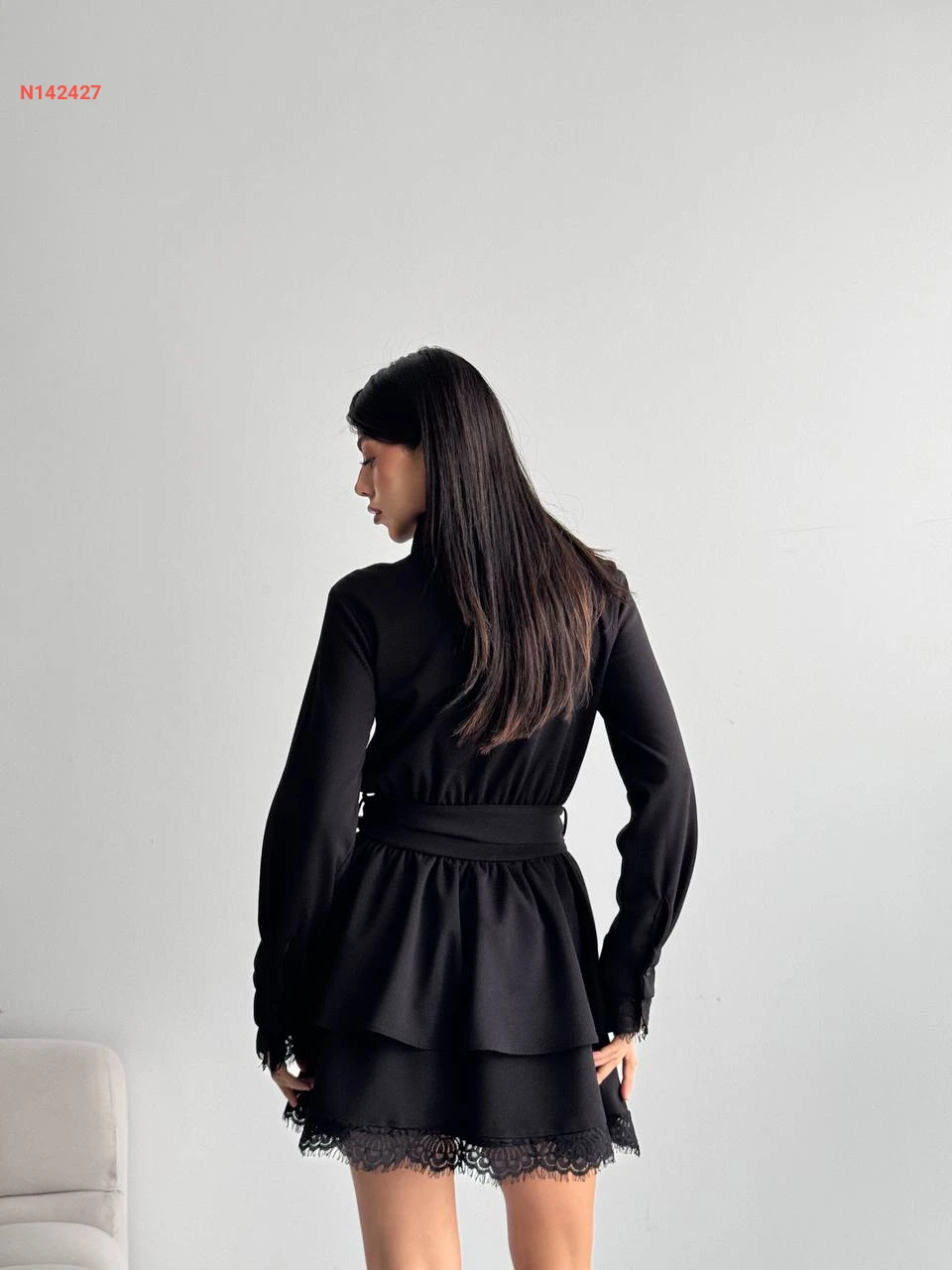 فستان قصير كشكش مع دانتيل