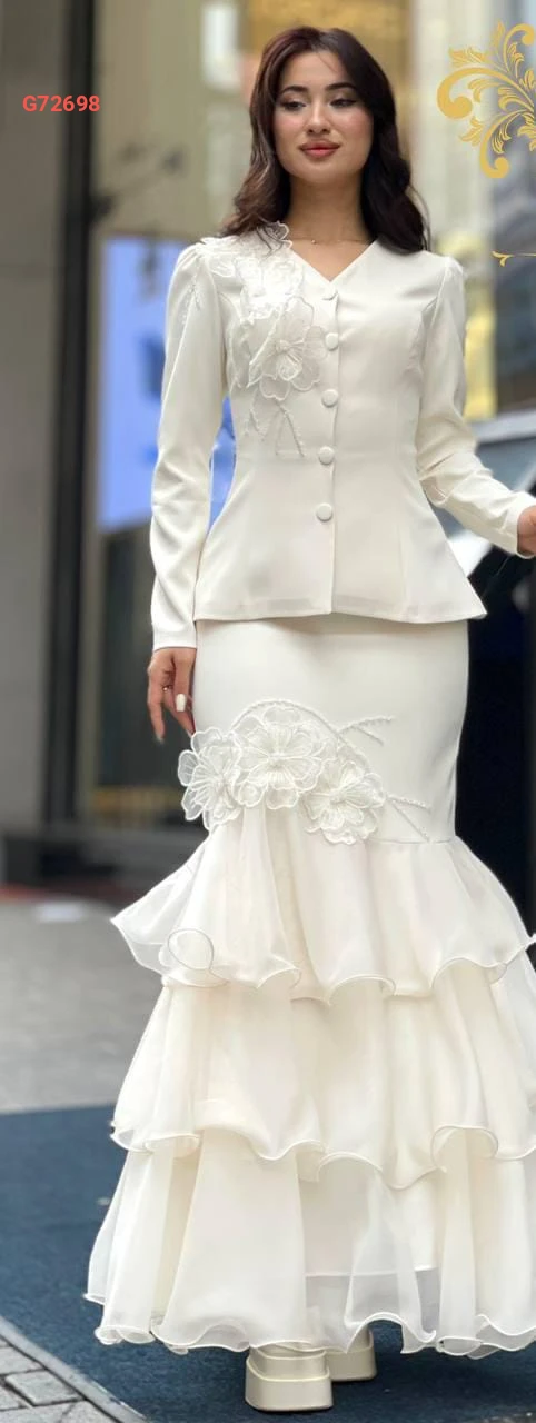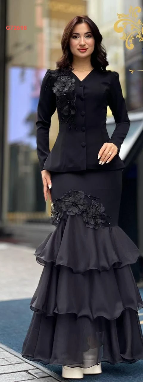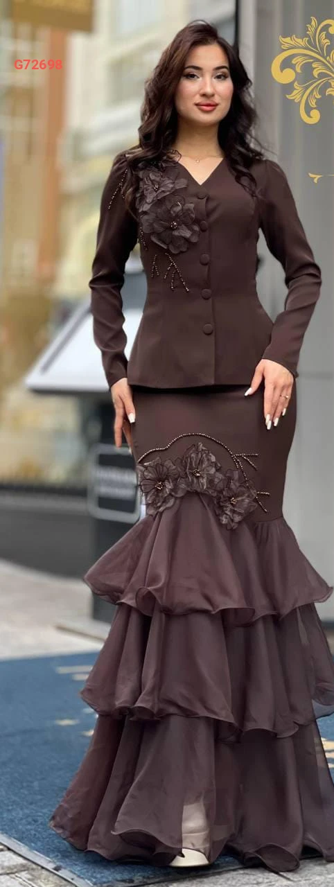 طقم تنورة كشكش مع ورد وتطريز