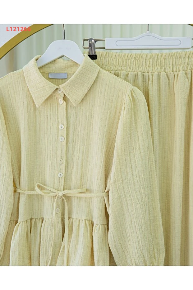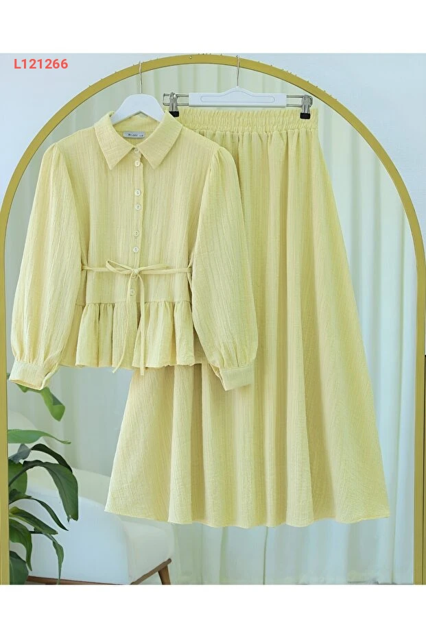 استمتع بإطلالة ساحرة مع مودامورفو، تنسيق التنورة المزينة بالدبابيس والذي يتميز بتصميمه الفريد. يأتي باللون الأصفر المتألق مع تفاصيل فرفرية عند الحواف ورباط عند الخصر، مما يضفي لمسة من الأنوثة والراحة. اجعلي كل لحظة تعبر عن أسلوبك الخاص مع هذه القطعة المثالية لكل مناسبة!