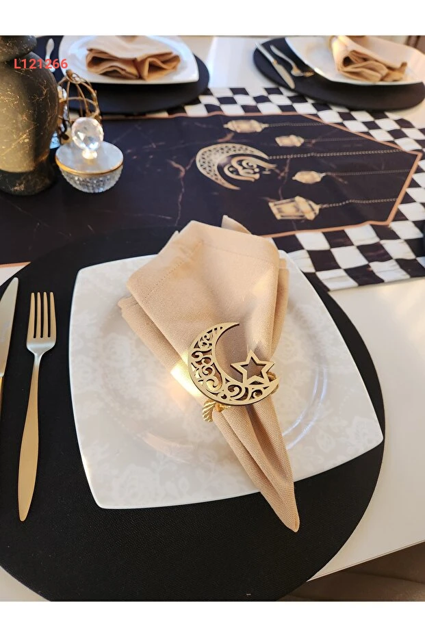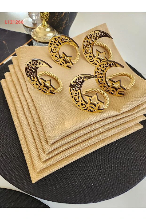 حلقات مائدة رمضانية ذهبية على شكل هلال ونجمة - مجموعة 6 قطع