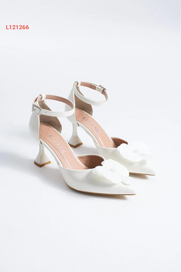 استمتعي بأناقتك الفائقة مع حذاء الزفاف RUXENE، المزود بتفاصيل زهر اللؤلؤ الأبيض وسُمكه 8 سم. تصميمه المدبب يضمن لكِ طلة ساحرة وأناقة راقية، بينما يوفر الكعب العالي الراحة والثبات أثناء حفل الزفاف، مما يجعله الخيار المثالي للعروس التي تبحث عن التميز.