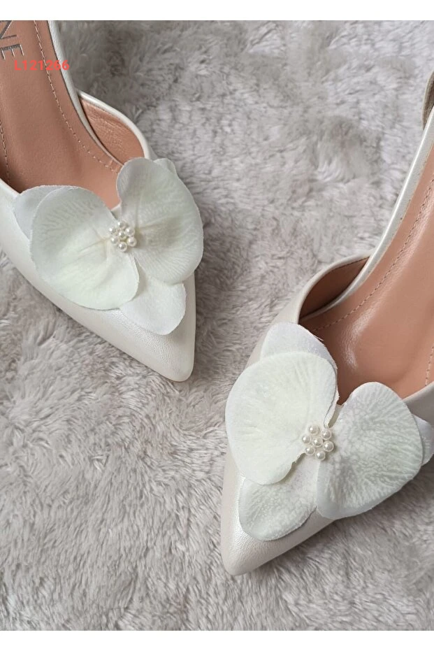 حذاء زفاف بكعب 8 سم وبتفاصيل زهور لؤلؤة بيضاء من روكسين إيزيل