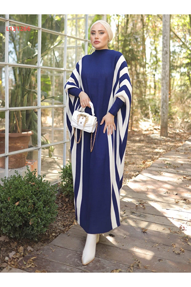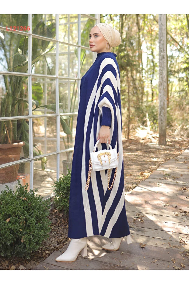 تألقي بأناقة وراحة مع فستان SAHRA BUTİK ذو الخطوط الأفقية، المصنوع من أعلى جودة من الكتان الناعم في لون الكحلي الرائع. تصميمه الفريد على شكل الوطاويط يوفر لكِ حرية الحركة ويضيف لمسة عصرية إلى إطلالتك المحتشمة، مما يجعله الخيار المثالي لكل المناسبات. امنحي نفسك لمسة من التميز مع هذا الفستان الذي يجمع بين الأناقة والراحة.