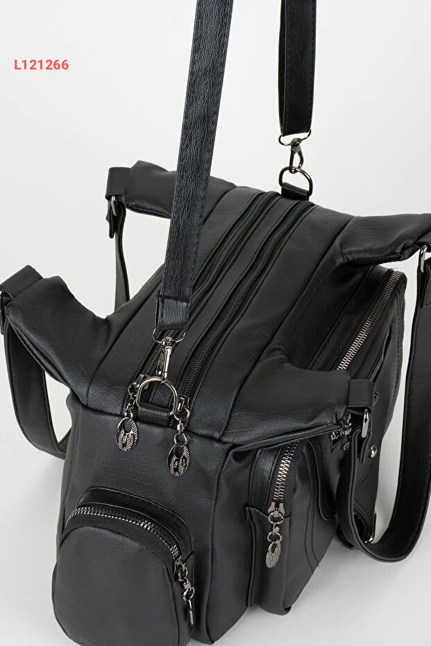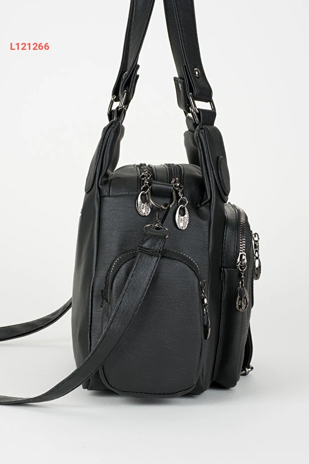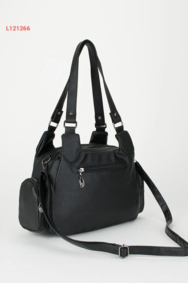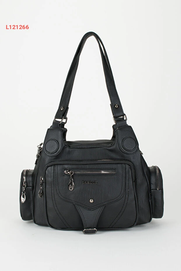 حقيبة كتف جلدية سوداء متعددة الجيوب للسيدات من ساميلون