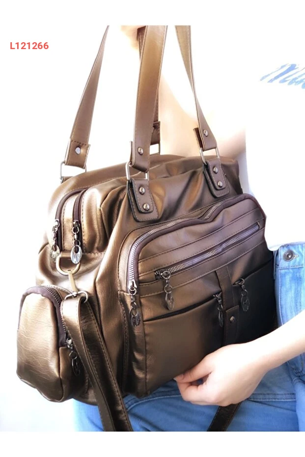 احصلي على لمسة أنيقة ومميزة مع حقيبة Samilon المعدنية بلون النحاس، المصنوعة من الجلد الم Wash الذي يجمع بين الأناقة والعملية. تتميز بتصميمها متعدد الجيوب، مما يوفر لك مساحة مثالية لتنظيم أغراضك اليومية بسهولة، بينما تمنحك حزام الكتف قابلية الاستخدام المريح في جميع المناسبات.