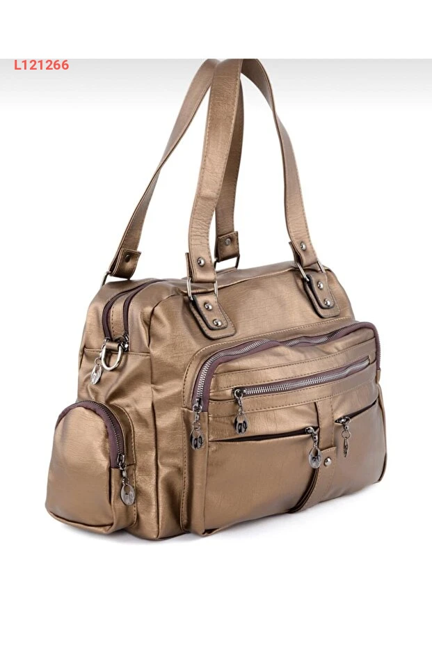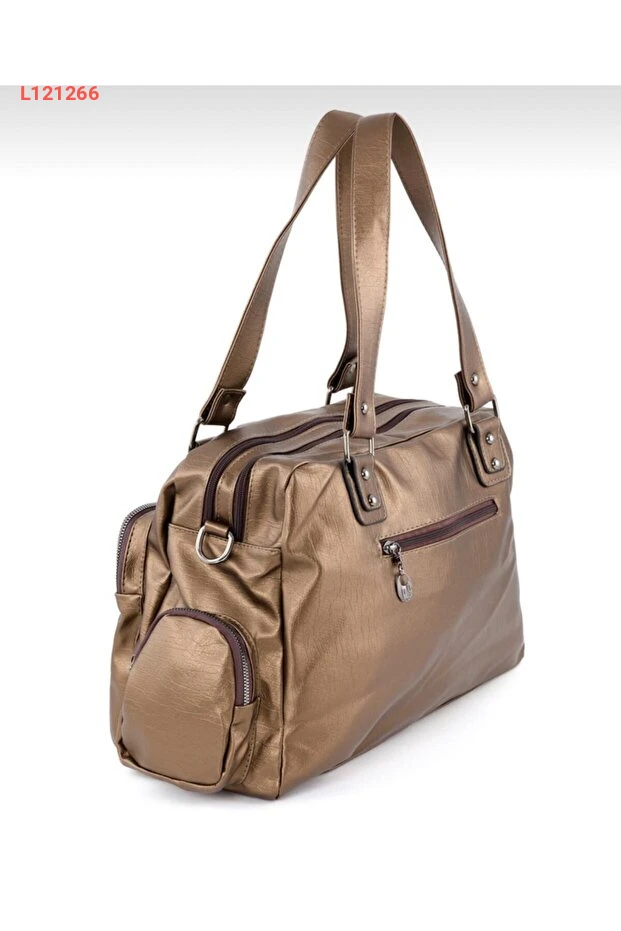 حقيبة كتف وكوع نسائية معدنية بلون النحاس مع عدة جيوب