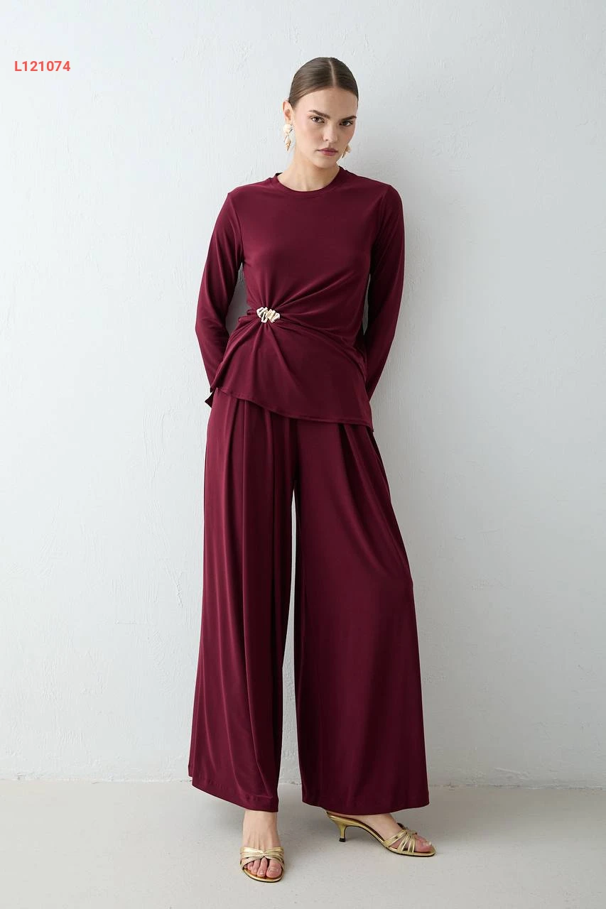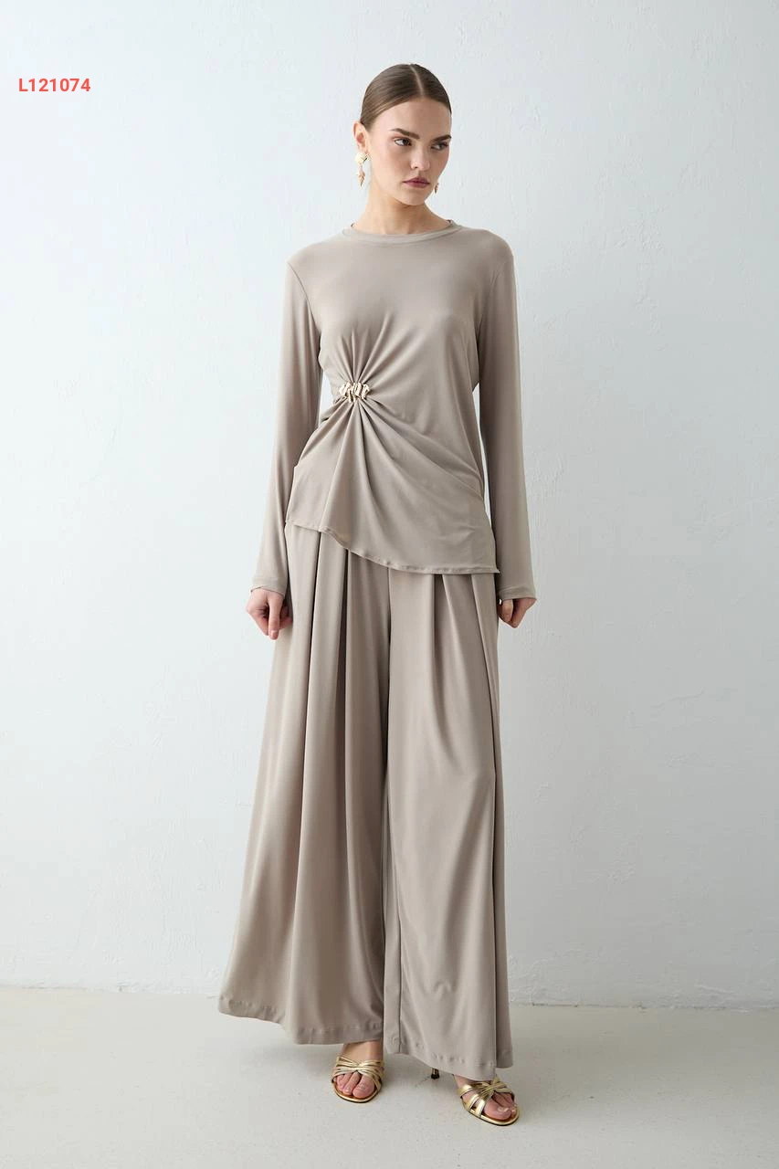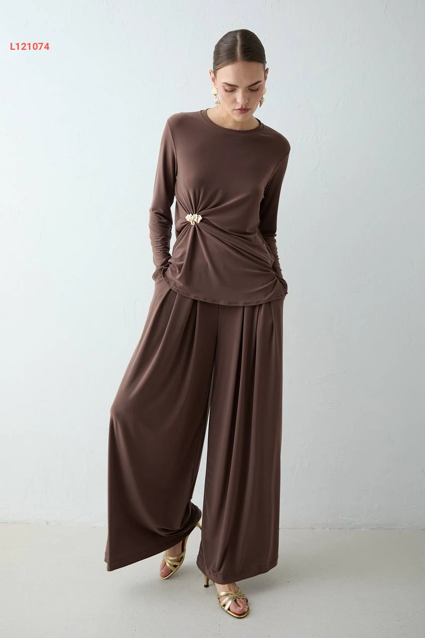 طقم بنطال ساندي وبلوزة مجمعة ببروش