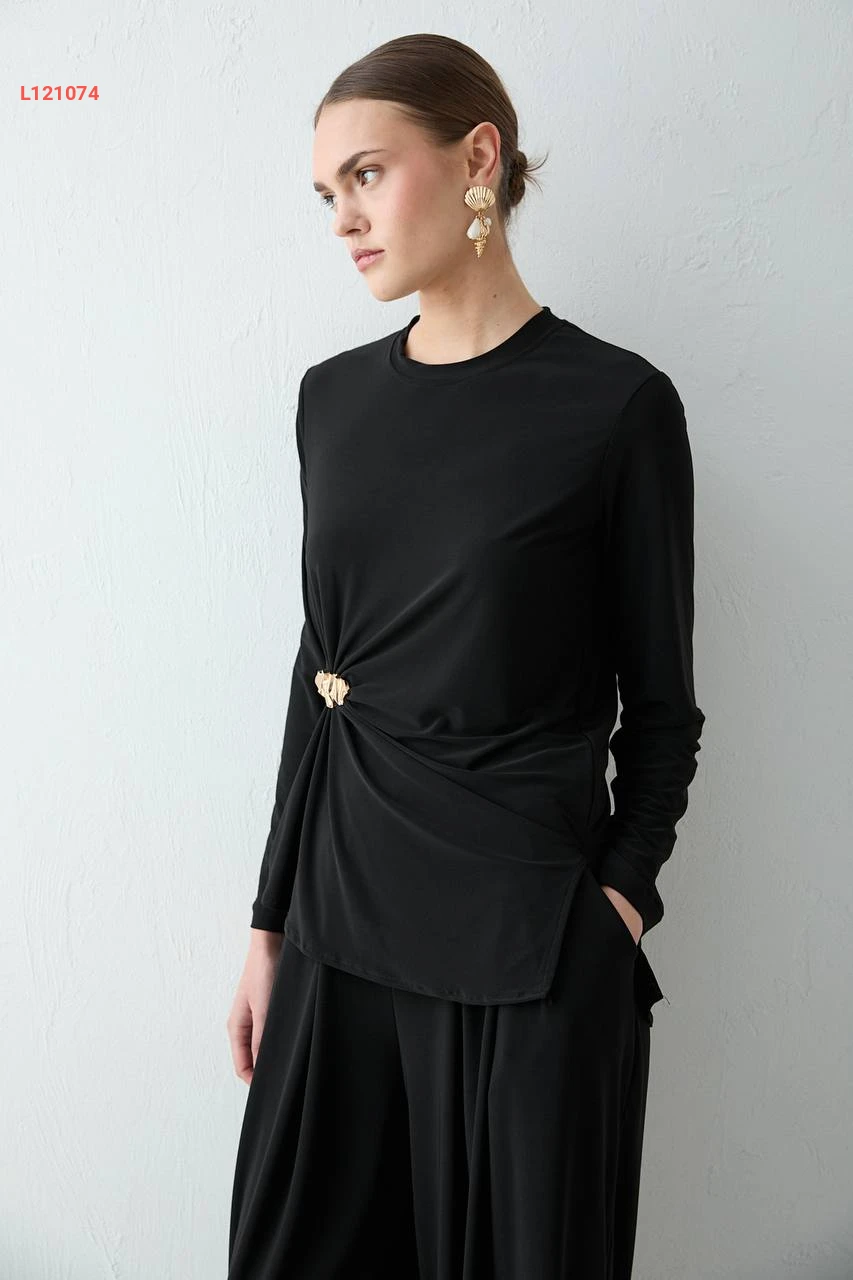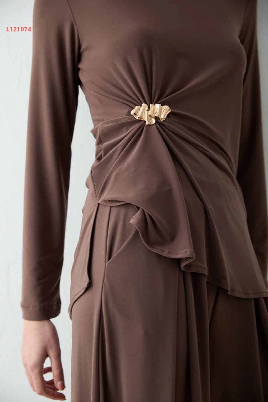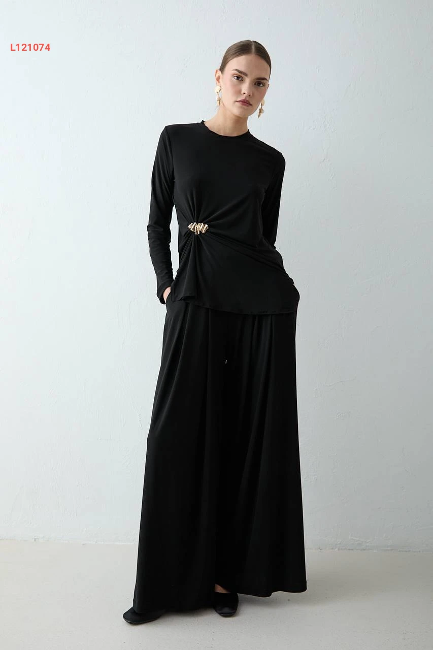 طقم بنطال ساندي وبلوزة مجمعة ببروش